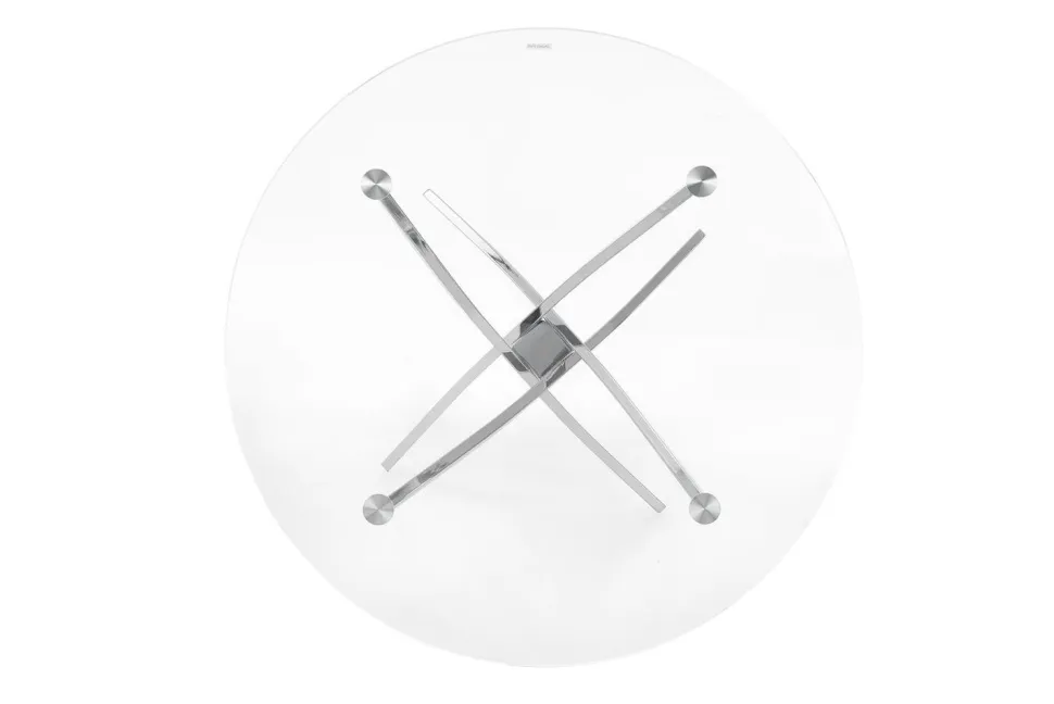 Dodaj sobie blasku dzięki stylowemu stolikowi Amber od Intesi. 4-osobowy szklany okrągły stół z transparentnym blatem i nogami w kolorze chromu zapewnia nowoczesny, elegancki wygląd.
