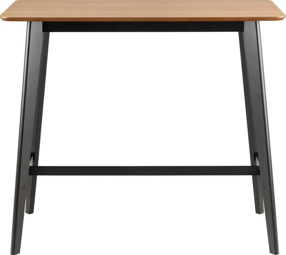 Wzbogać styl swojego nowoczesnego domu dzięki temu eleganckiemu i stylowemu stolikowi barowemu Roxby. Ma kontrastujące połączenie kolorów lakierowanego blatu z forniru dębowego i lakierowanej na czarno drewnianej podstawy, a także zaokrąglone krawędzie i zwężane nogi, które nadają mu retro sentyment i współczesną estetykę.
