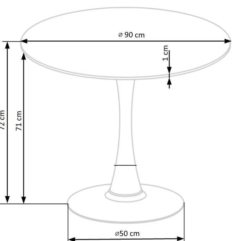 Dzięki swojemu okrągłemu kształtowi, stół ten świetnie sprawdzi się zarówno w małych, jak i większych pomieszczeniach, a jego rozmiar 90×90 cm pozwoli na wygodne spożywanie posiłków przez trzy osoby. Stół nie posiada funkcji rozkładania, co gwarantuje jego prostotę i minimalizm.