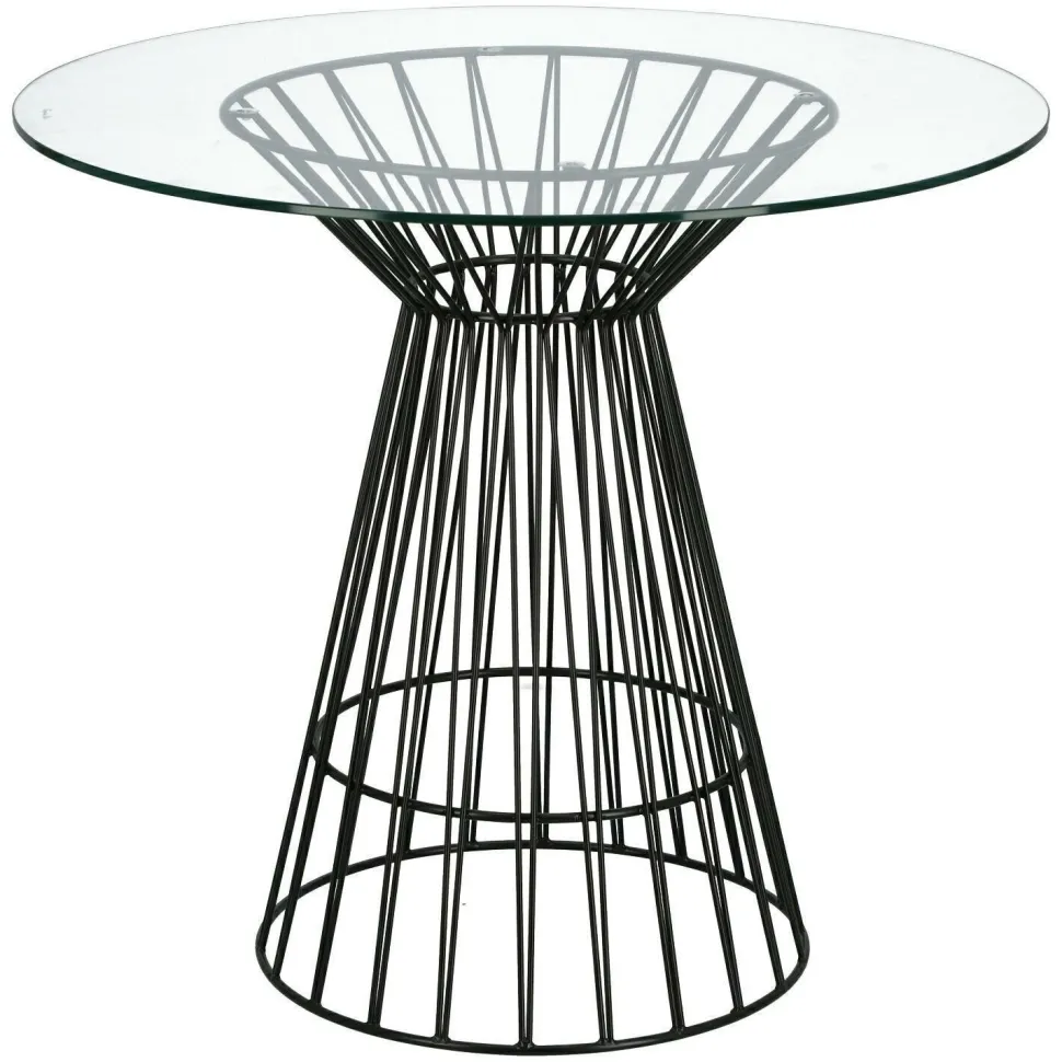 Stół Cage to wyrafinowane połączenie szkła i stali. Jego oryginalna podstawa złożona z metalowych prętów w kolorze eleganckiej czerni rozszerza się ku dołowi i jest w stanie utrzymać szeroką taflę szklanego blatu (wysokość podstawy 70 cm, średnica podstawy 45 cm, średnica blatu 80 cm, grubość blatu 0,8 cm). Niezwykły kształt stołu przypominający futurystyczną rzeźbę, stanie się oryginalną ozdobą nowoczesnego salonu lub gabinetu, a dzięki swej uniwersalnej kolorystyce będzie pasował do wnętrza w każdym stylu. Dodatkową zaletą jest fakt, że metalowa podstawa pomalowana została na czarno metodą proszkową, dzięki czemu zyskała dodatkową odporność na czynniki mechaniczne oraz ochronę przed promieniowaniem UV i wilgocią.