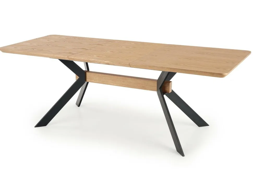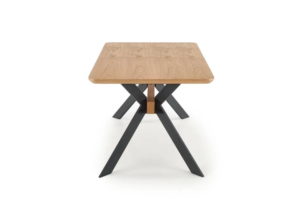 Wykonany z wysokiej jakości MDF oraz okleiny naturalnej, a także malowanej proszkowo stali, zapewnia trwałość i wytrzymałość na wiele lat użytkowania.Jego prostokątny kształt oraz piękny kolor dębu naturalnego na blacie i czarnych nogach dodają mu niepowtarzalnego stylu loftowego.Dzięki możliwości rozłożenia stołu, zmieści się na nim zarówno 6, jak i 8 osób, co sprawia, że jest to idealne rozwiązanie dla rodzin i przyjaciół.