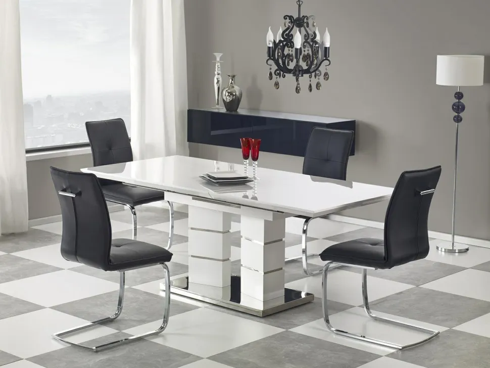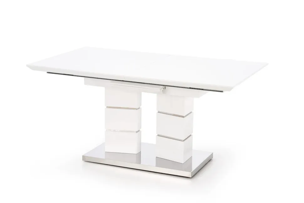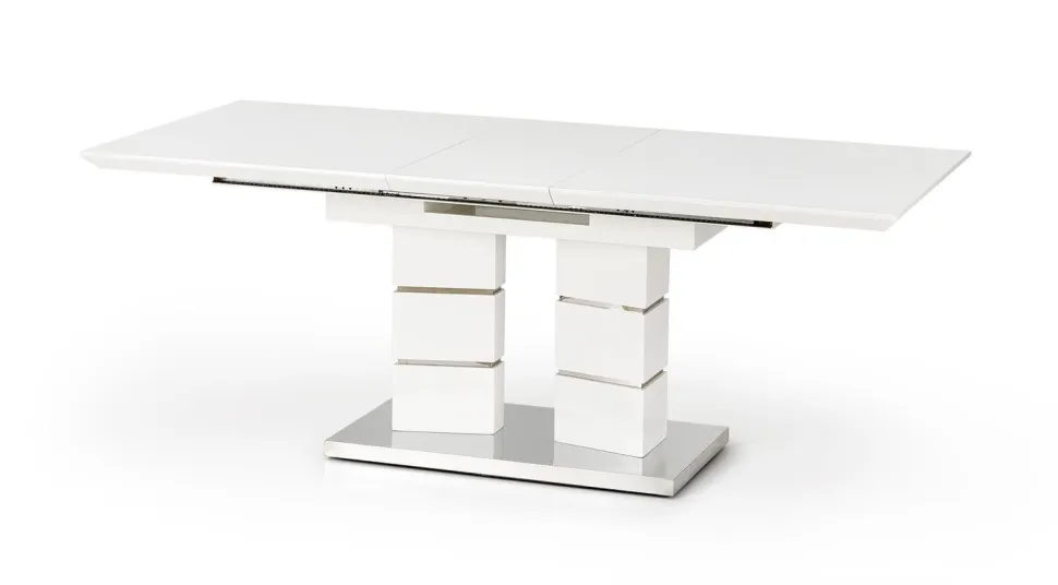 Dzięki swojemu nowoczesnemu stylowi i glamour wykończeniu, stół ten będzie idealnym uzupełnieniem każdego wnętrza. Jego rozmiar pozwala na wygodne siedzenie nawet ośmiu osób, a dzięki możliwości rozłożenia, stół zmieści się również w mniejszych pomieszczeniach. Blat prostokątny wykonany z MDF lakierowanego to gwarancja trwałości i łatwej pielęgnacji. Stal nierdzewna, z której wykonane są nogi, zapewnia stabilność i wytrzymałość stołu. Stół rozkładany to świetne rozwiązanie dla rodzin, które często przyjmują gości.