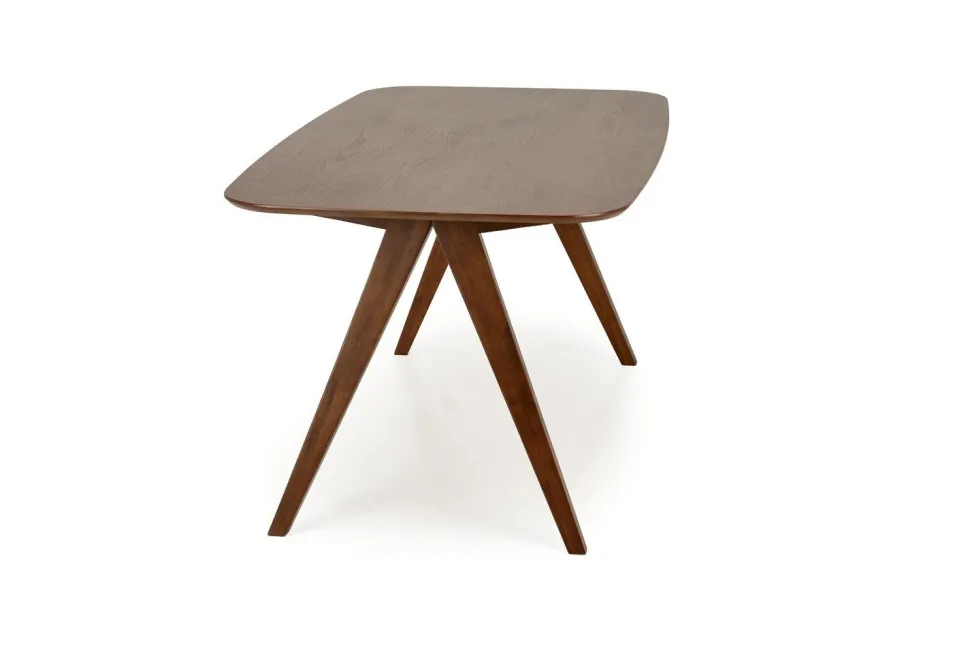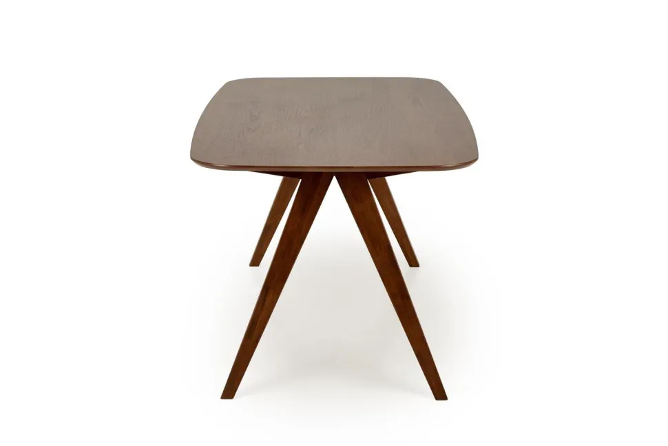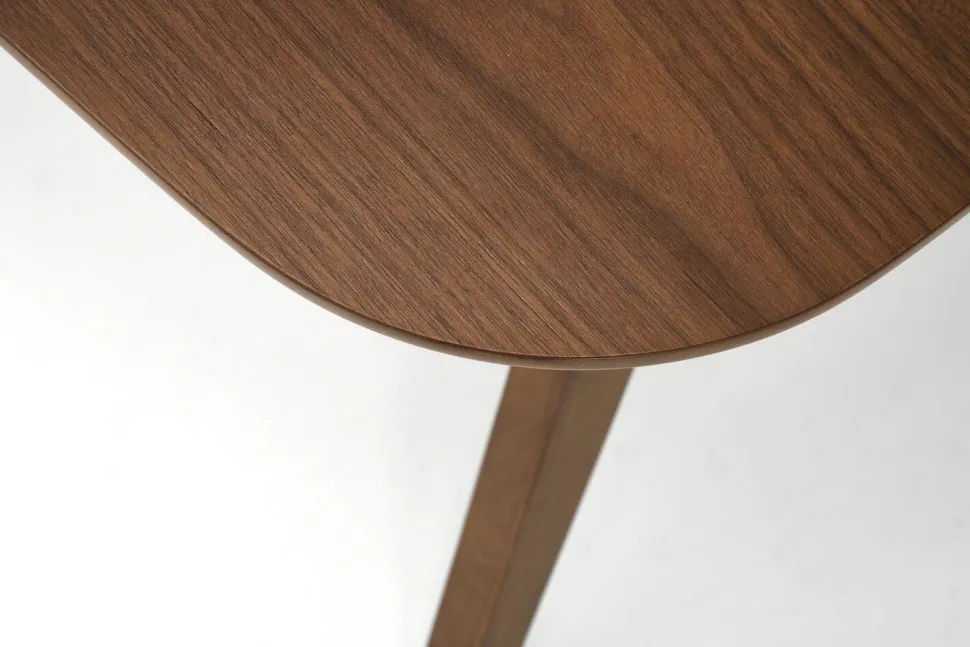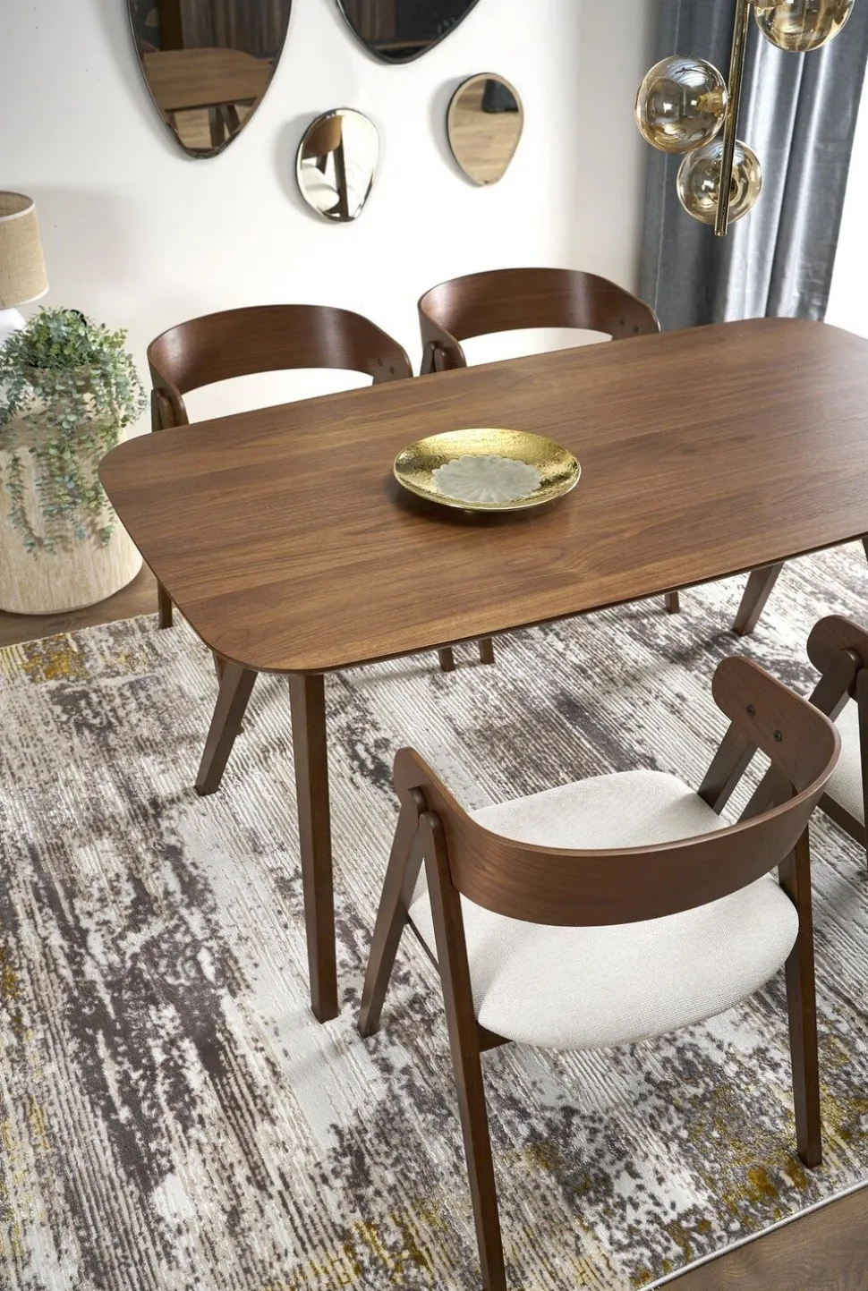 Kauczukowe nogi stołu Fido, również w orzechowym wykończeniu, zapewniają stabilność i trwałość, tworząc spójną estetycznie całość. Ich solidna konstrukcja gwarantuje, że stół będzie służył przez lata, zachowując przy tym swój nienaganny wygląd. To mebel, który łączy w sobie funkcjonalność z wyjątkowym designem, stanowiąc idealne miejsce do codziennych posiłków, jak i eleganckich przyjęć.