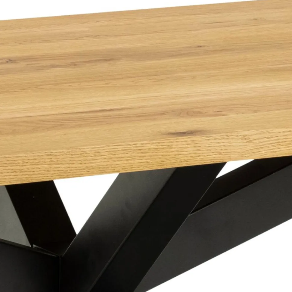 Duży stół do salonu lub jadalni jest miejscem, które posiada wręcz symboliczne znaczenie. To przy nim odbywają się rodzinne spotkania, ważne rozmowy, długie chwile przy pracy. Wydaje się być obowiązkowym elementem każdego domu, a co za tym idzie, musi być optymalnie dostosowany do stylu życia domowników i ich upodobań.Duży stół Heavenbędzie zarówno pięknym wyposażeniem salonu, jak i miejscem rodzinnych spotkań. Jego unikalny charakter zaprezentuje się fenomenalnie w nowoczesnej kuchni lub jadalni, a także aranżacjach industrialnych i loftowych. Będzie także wyjątkowym dodatkiem do klasycznych wnętrz, którym doda charakteru. Ten wyjątkowy industrialny stół posiadamasywny prostokątny blat o wymiarach 220×90 cm z olejowanego forniru dębowego, którypomieści bez problemu nawet 8 osób. Podstawę stanowi geometryczny metalowy stelaż w kolorze czerni, który dodaje charakteru, a przy tym pozwala na komfortowe dosunięcie krzeseł i zapewnia wygodę podczas siedzenia. To niecodzienne połączenie materiałówwygląda niezwykle eleganckoi z pewnością nigdy Ci się nie znudzi.