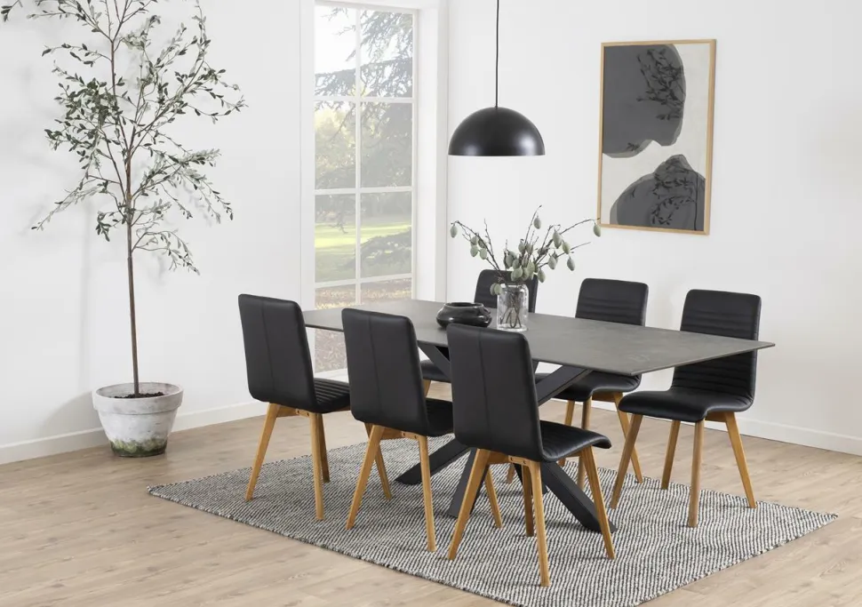 Duży stół Heaven będzie ozdobą Twojego domu oraz miejscem spotkań rodzinnych. Dzięki swojemu unikalnemu charakterowi, mebel wspaniale zaprezentuje się w każdej nowoczesnej jadalni czy kuchni. Idealnie sprawdzi się w aranżacjach industrialnych, loftowych, ale również w bardziej klasycznych wnętrzach, w których będzie stanowić wyjątkowy dodatek.Industrialny stół o pięknym ceramiczno-szklanym blacie oraz metalowej pomalowanej na czarno podstawie pozwoli na biesiadowanie w dużym gronie rodzinnym. Konstrukcja opiera się na metalowym stelażu o geometrycznej formie i zwieńczona jest blatem z czarnej ceramiki i szkła. Ze względu na swój duży rozmiar, stół pomieści komfortowo nawet 8 osób.Waga stołu: 76,1 kg