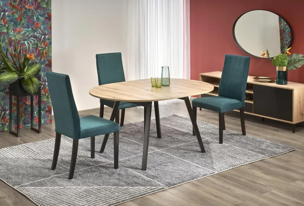 Ten stół rozkładany to idealne rozwiązanie dla osób ceniących sobie elegancki design i funkcjonalność. Wykonany z wysokiej jakości płyty meblowej okleinowanej lub drewna litego bukowego, zapewnia nie tylko estetyczny wygląd, ale również trwałość i solidność. Dostępny w kolorze dąb artisan, który dodaje mu stylu i elegancji.