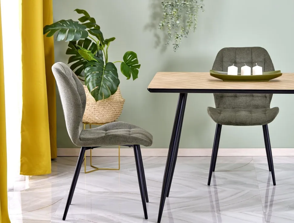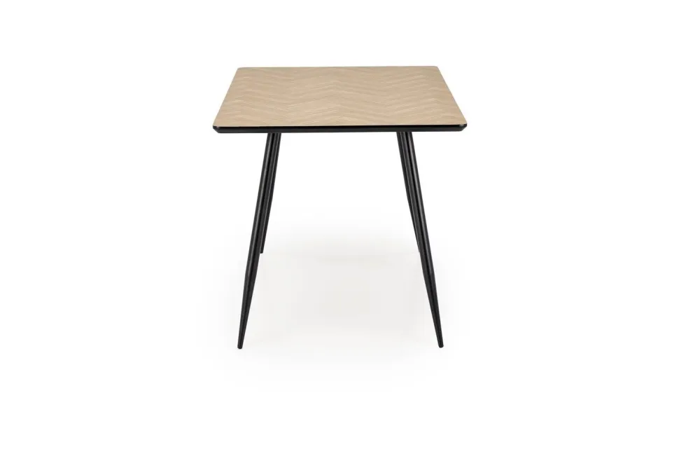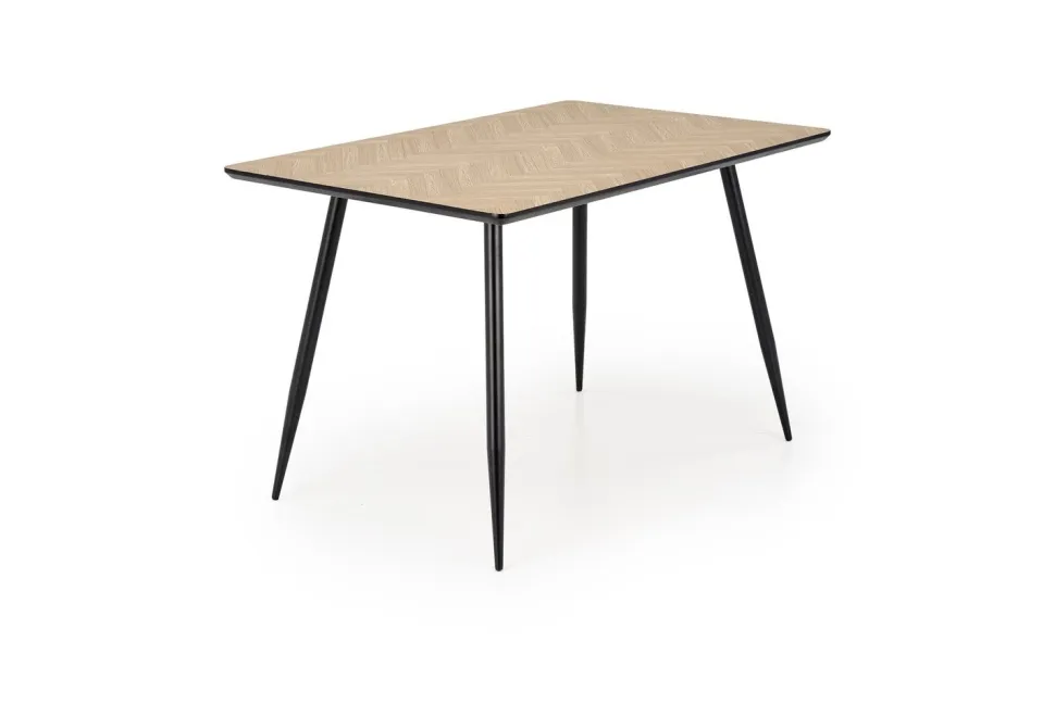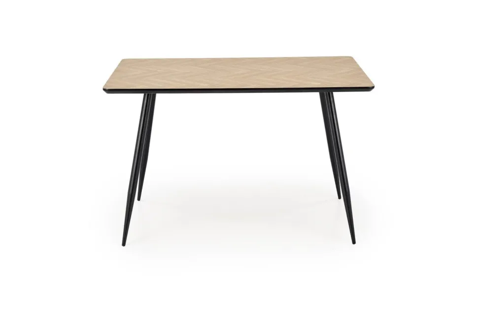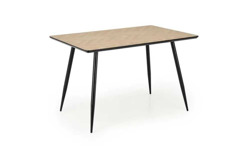 Metalowe nogi malowane proszkowo na czarno dodają stołowi nowoczesności i industrialnego charakteru, jednocześnie zapewniając stabilność oraz solidność całej konstrukcji. Mimo swojego minimalistycznego wyglądu, stół charakteryzuje się wysoką trwałością, co czyni go praktycznym wyborem dla osób ceniących prostotę i funkcjonalność. Kiefer to propozycja, która łączy stylowy wygląd z przystępną ceną, bez kompromisu na jakości.