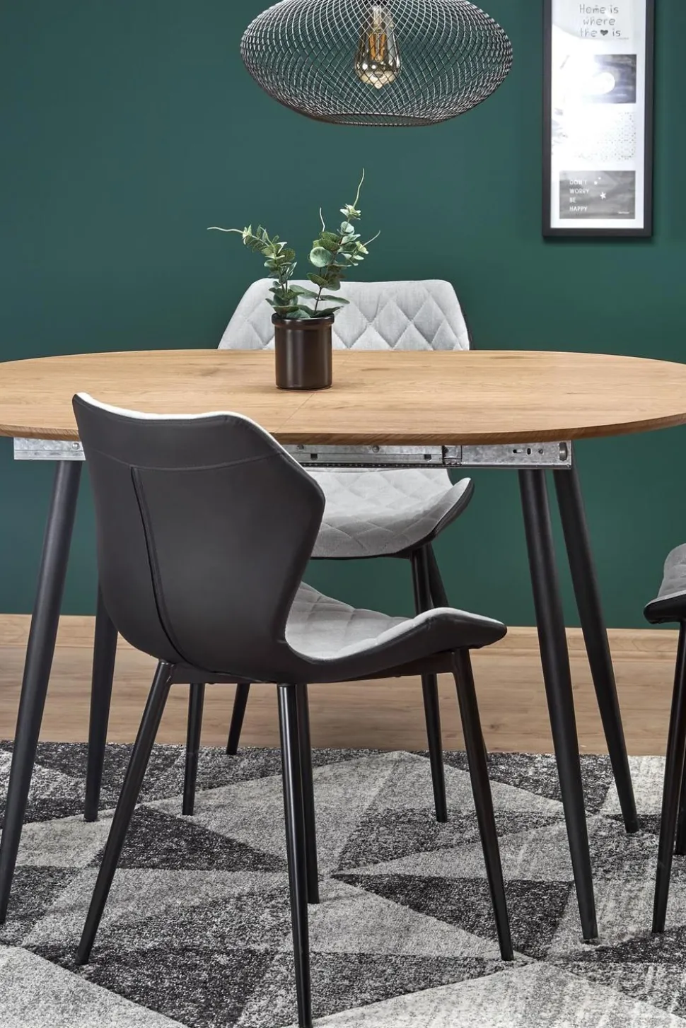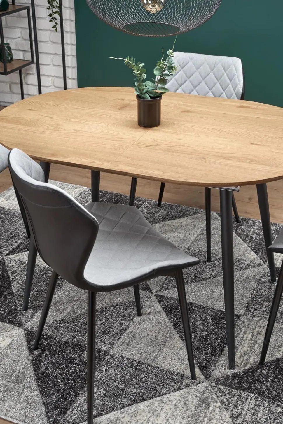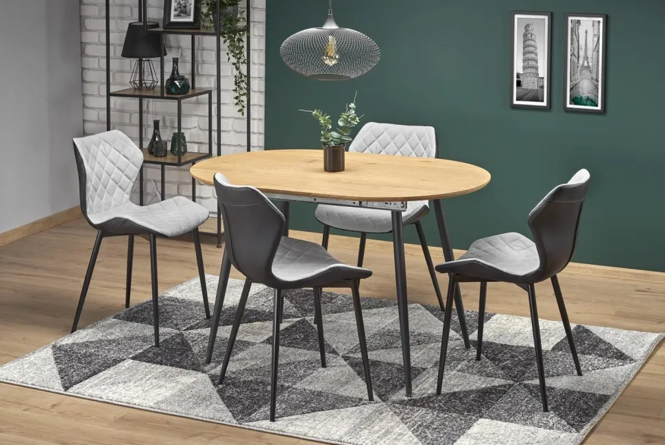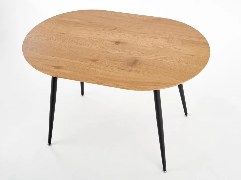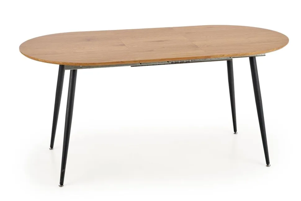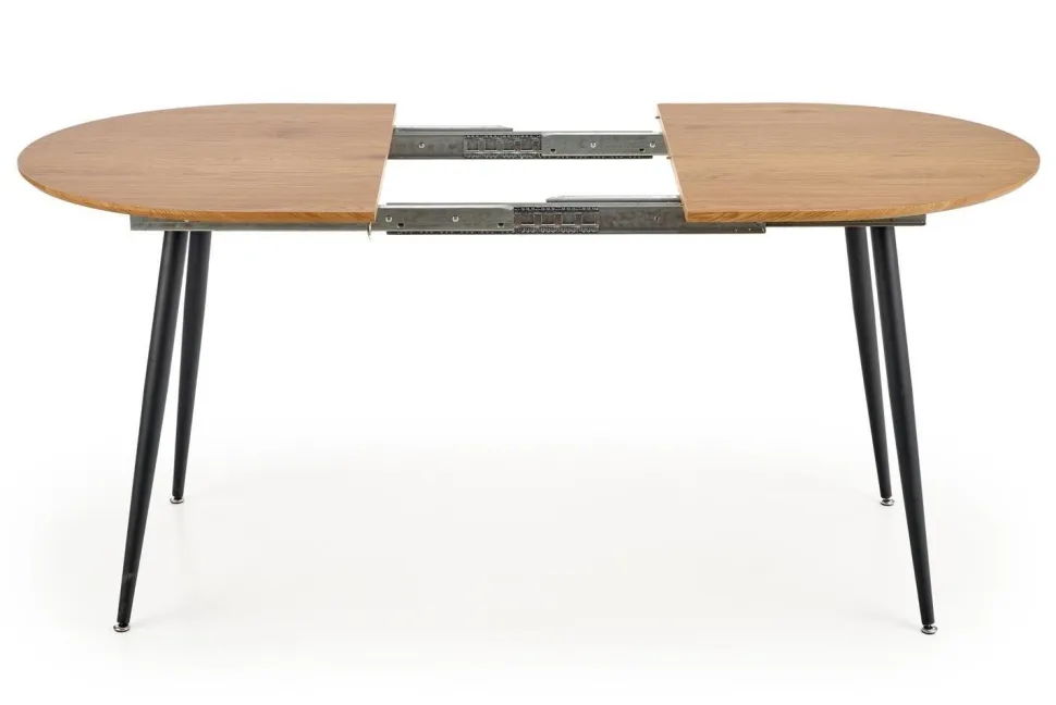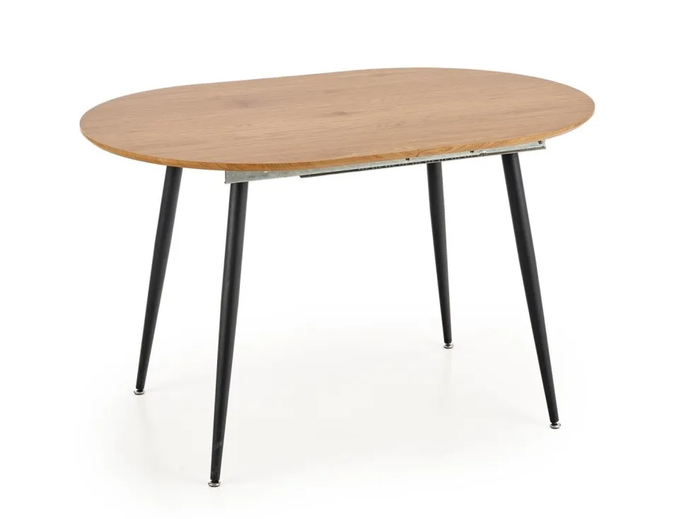 Ten piękny stół rozkładany to idealne rozwiązanie dla osób ceniących sobie wygodę i styl. Dzięki możliwości rozłożenia stołu, z łatwością pomieścisz na nim zarówno 6, jak i 4 osoby. Blat wykonany z MDF okleinowany w odcieniu dębu złotego, a nogi malowane proszkowo na czarno, tworzą harmonijną całość, która wprowadzi do Twojego wnętrza nowoczesny styl loftowy.