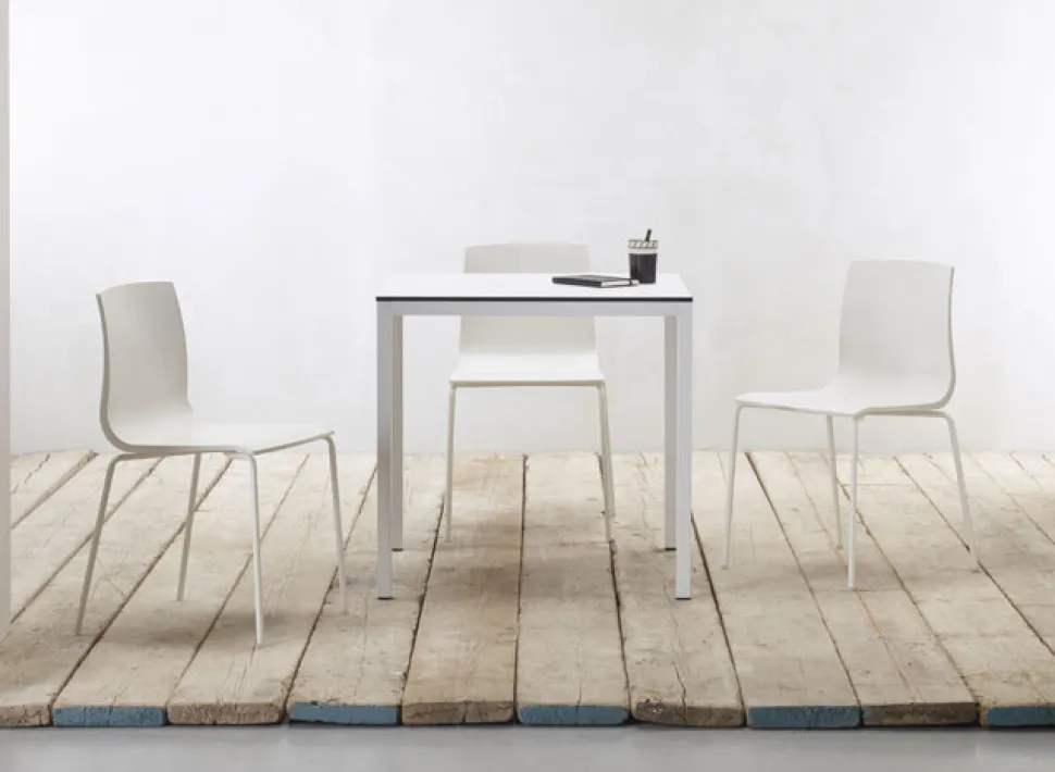 Stół Mirto w kolorze białym to połączenie elegancji, nowoczesności i funkcjonalności. Zapewniając kompaktową laminowaną powierzchnię blatu, doskonale komponuje się z ocynkowaną malowaną stalową konstrukcją, co nadaje mu wyjątkowego charakteru.