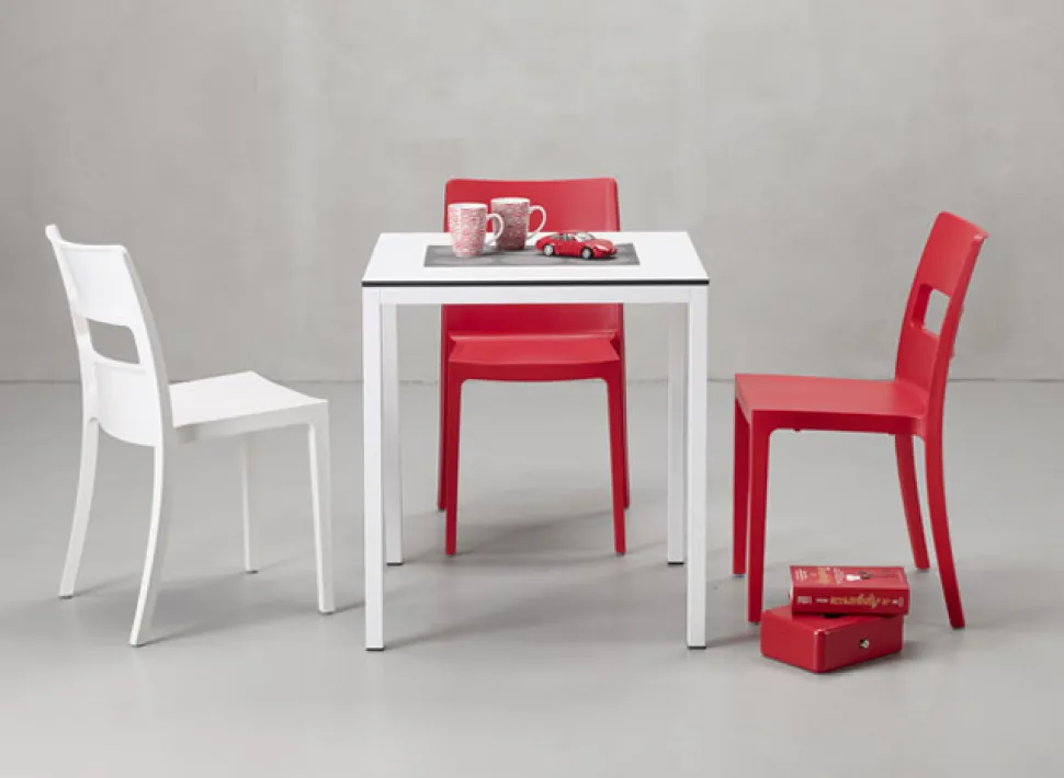 Stół Mirto w kolorze białym topołączenie elegancji, nowoczesności i funkcjonalności. Zapewniając kompaktowąlaminowaną powierzchnię blatu, doskonale komponuje się z ocynkowaną malowaną stalową konstrukcją, co nadaje mu wyjątkowego charakteru.