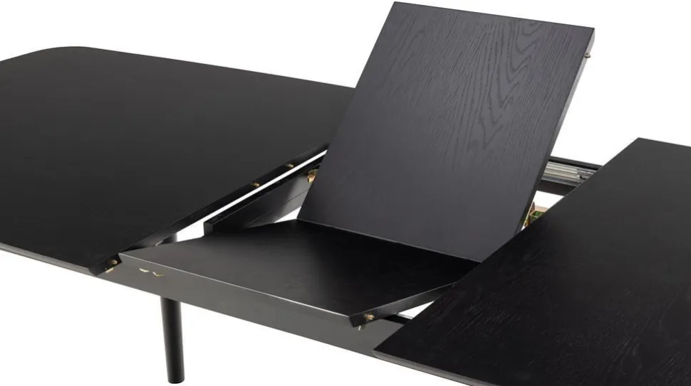 - Blat z forniru dębowego lakierowanego na czarno – elegancki i trwały materiał, nadający stołu wyjątkowy wygląd.