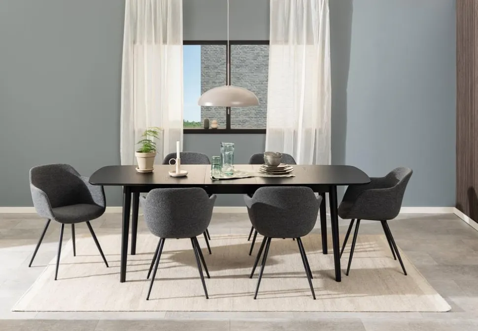 Stół Montreux to niezwykle atrakcyjny mebel do jadalni, który nie tylko zachwyca swoim wyglądem, ale także zapewnia wystarczającą przestrzeń dla całej rodziny. Jego prostokątny kształt, delikatne zaokrąglenia i fornir z czarnego dębu czynią go uniwersalnym dodatkiem, pasującym do różnorodnych wnętrz.