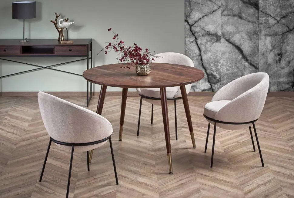 Stół Nicode to idealne rozwiązanie dla osób, które cenią sobie elegancję i nowoczesny styl. Wykonany z wysokiej jakości MDF-u okleinowanego oraz stali malowanej, zapewnia trwałość i stabilność przez wiele lat. Jego okrągły blat o średnicy 110 cm pozwala na wygodne spożywanie posiłków w gronie czterech osób.