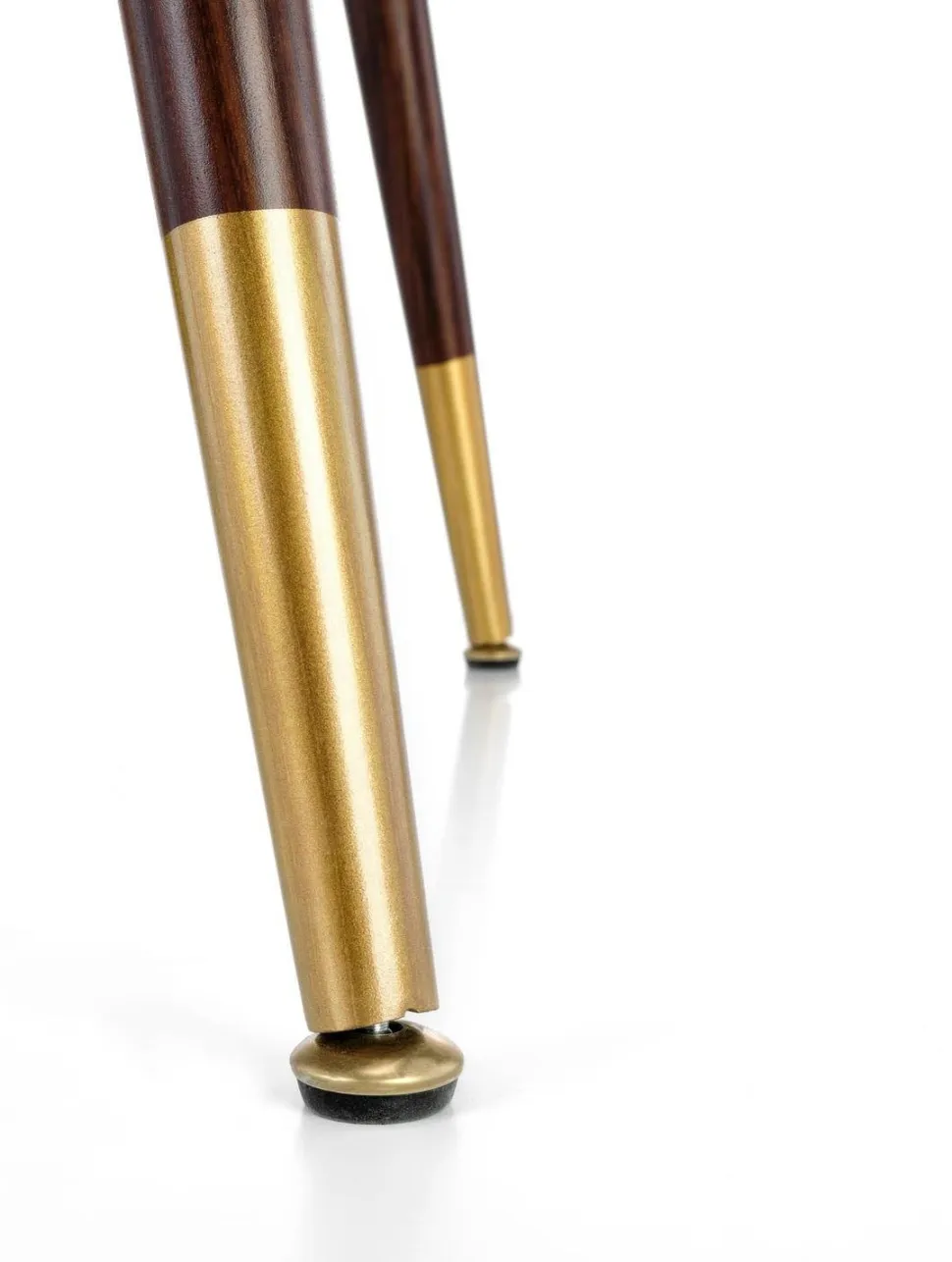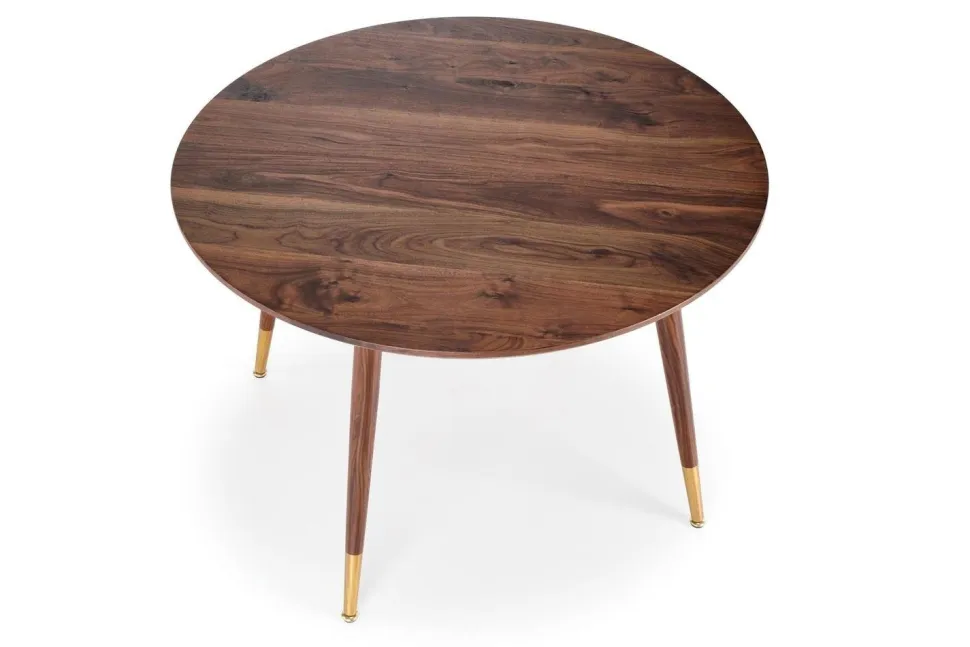 Wyróżnia się nie tylko swoim pięknym wyglądem, ale także funkcjonalnością. Blat stołu nie jest rozkładany. Dodatkowo, jego orzechowy kolor doskonale komponuje się z różnymi stylami wnętrzarskimi, a złote nogi dodają mu eleganckiego charakteru.
