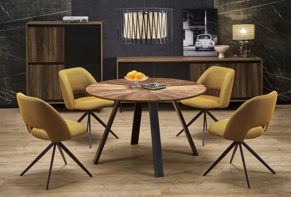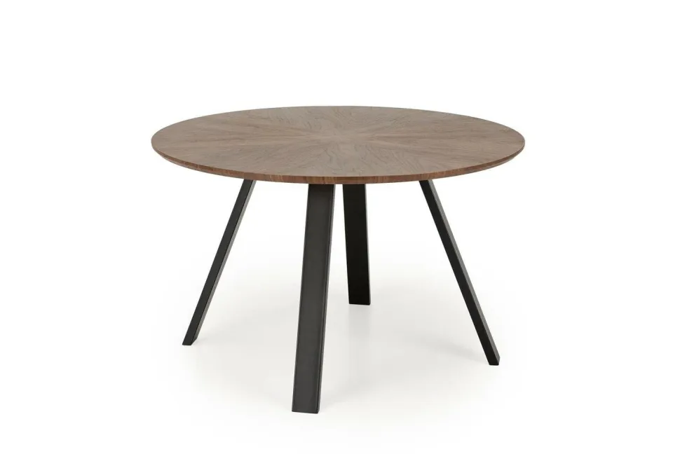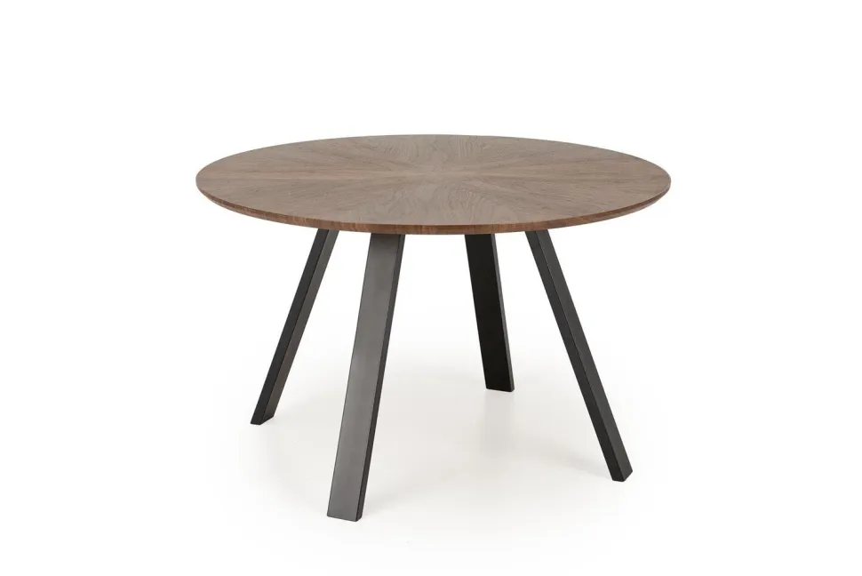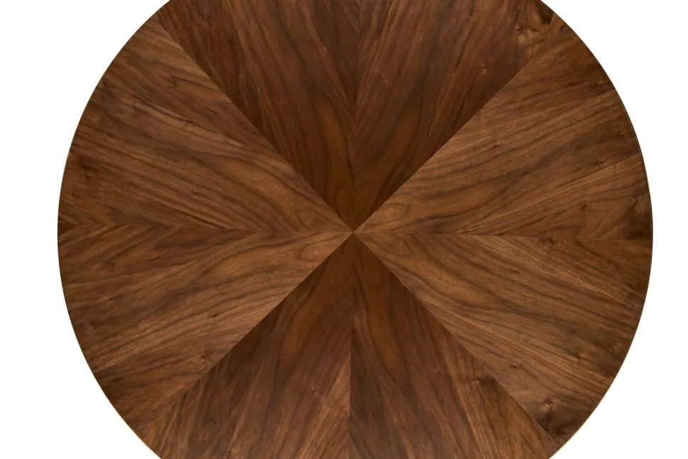 Stół Ralik charakteryzuje się okrągłym blatem, który został wykonany z najwyższej jakości okleiny orzechowej. To nie tylko powierzchnia użytkowa, ale również prawdziwe dzieło sztuki stolarskiej. Delikatne słoje drewna układają się w przepiękny wzór, który przyciąga wzrok i stanowi wyjątkową ozdobę każdego wnętrza.
