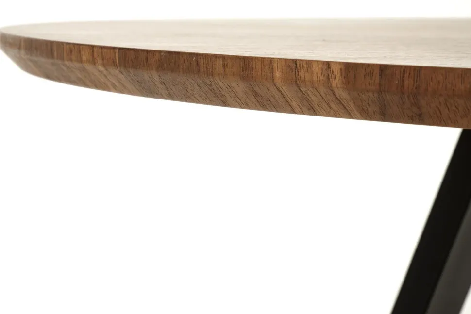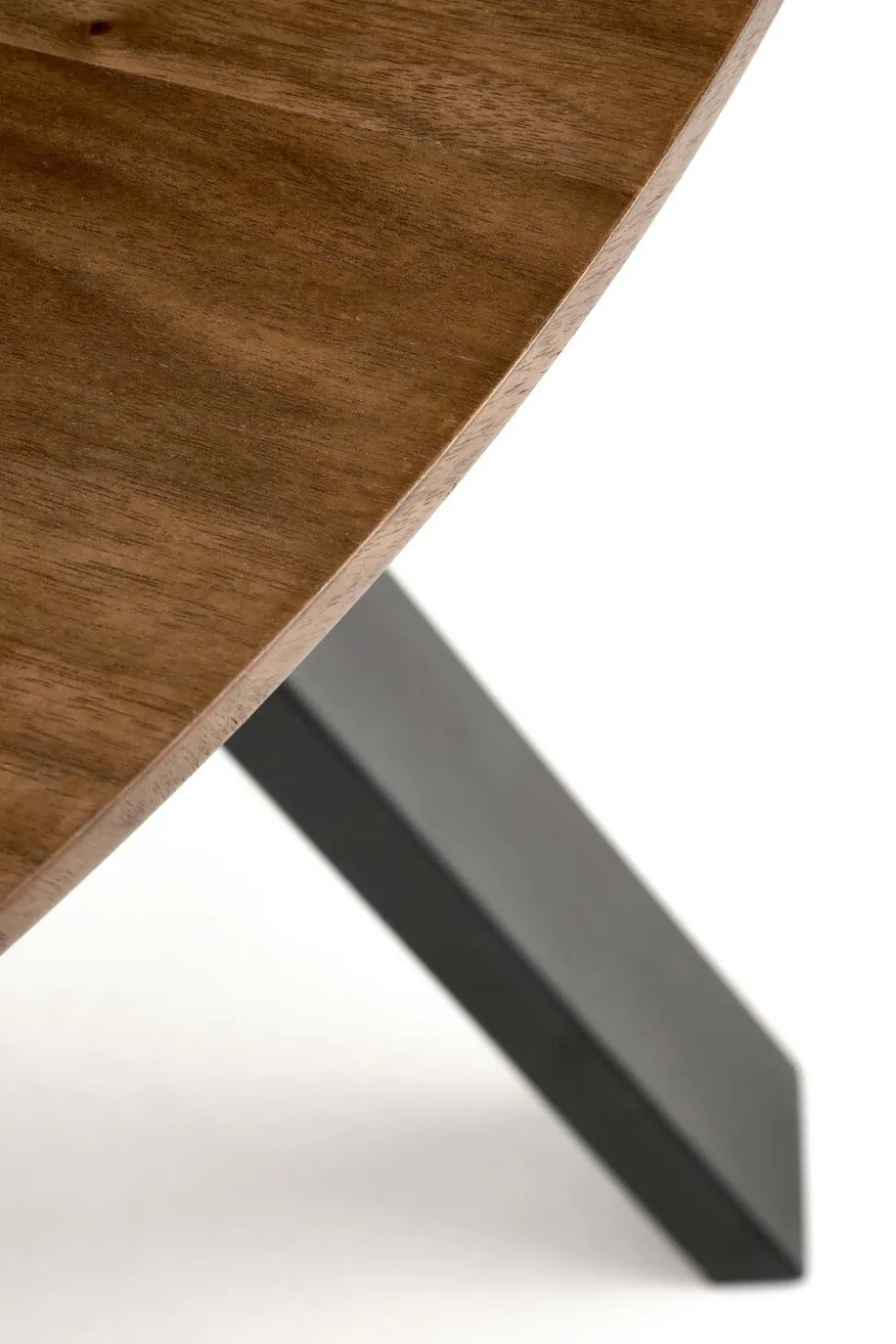 Stół Ralik wyróżnia się nie tylko pięknym blatem, ale także nowoczesnymi nogami wykonanymi ze stali malowanej proszkowo. Te czarne, eleganckie nogi tworzą wyrazisty kontrast z ciepłym drewnianym blatem, co dodaje meblowi wyjątkowego charakteru. Ich głęboki kolor i matowe wykończenie stanowią stylowy kontrapunkt dla naturalnego piękna okleiny orzechowej. Ten kontrast podkreśla elegancję stołu i sprawia, że staje się on centralnym punktem każdej aranżacji wnętrza.