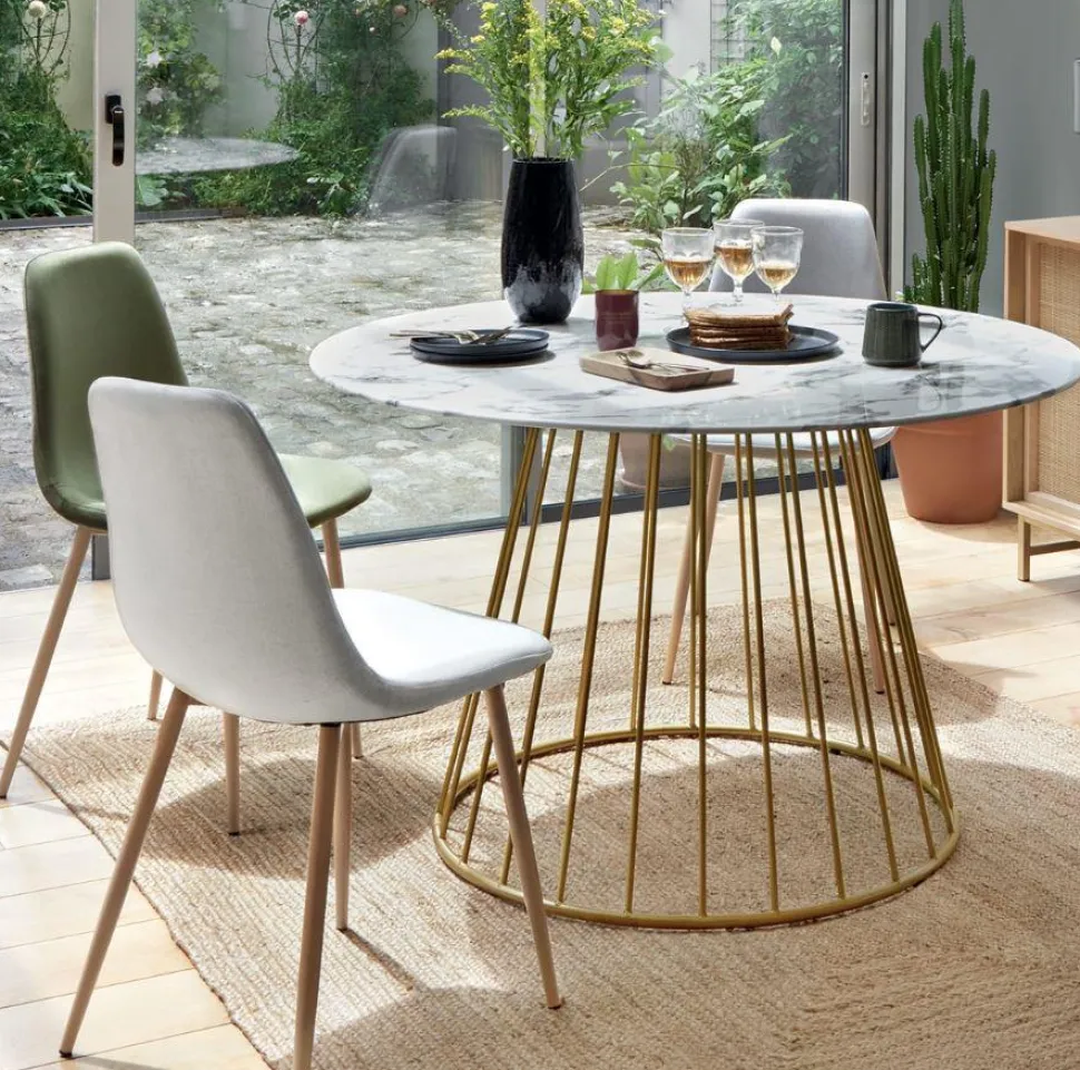 Szklany stół ze złotą, metalową podstawą sprawdzi się przede wszystkim we wnętrzu w stylu glamour. Mebel z okrągłym blatem w kolorze marmuru to niezwykle dekoracyjny projekt, który wniesie do wnętrza odrobinę klasycznego luksusu. Stół jest tak solidny, że może pomieścić nawet cztery osoby. Jest doskonały na różne okazje – od rodzinnych obiadów po małe spotkania z przyjaciółmi. Rayo jest zarówno praktyczny, jak i stylowy, co czyni go idealnym dodatkiem do każdego domu.