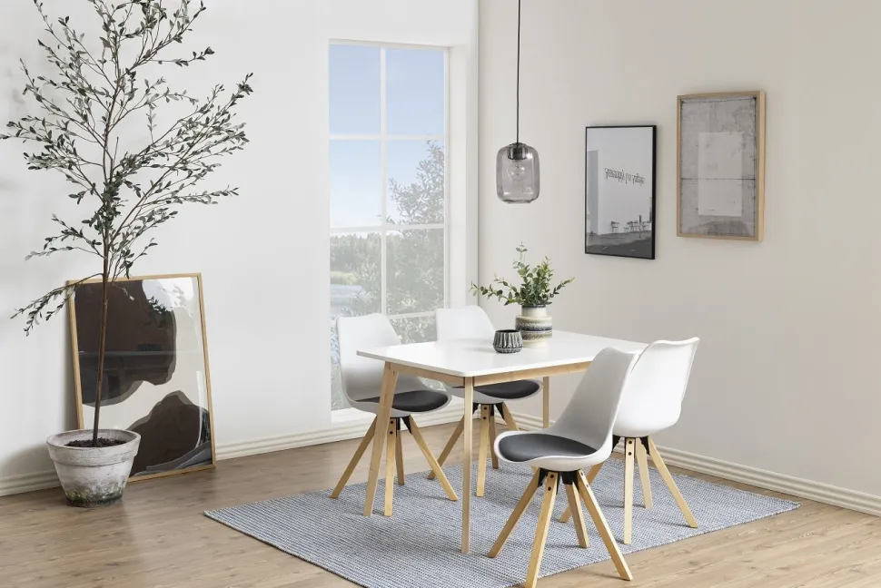 Prostokątny stół Raven, utrzymany w stylu skandynawskim, stanowi doskonałe połączenie nowoczesności z naturalnym pięknem drewna brzozowego. Wykończony bezbarwnym lakierem, który podkreśla naturalny odcień drewna, stół ten stanie się efektownym elementem każdego wnętrza. Biel blatów wykonanych z płyty MDF idealnie kontrastuje z ciepłym odcieniem drewna, dodając meblowi lekkości i świeżości.