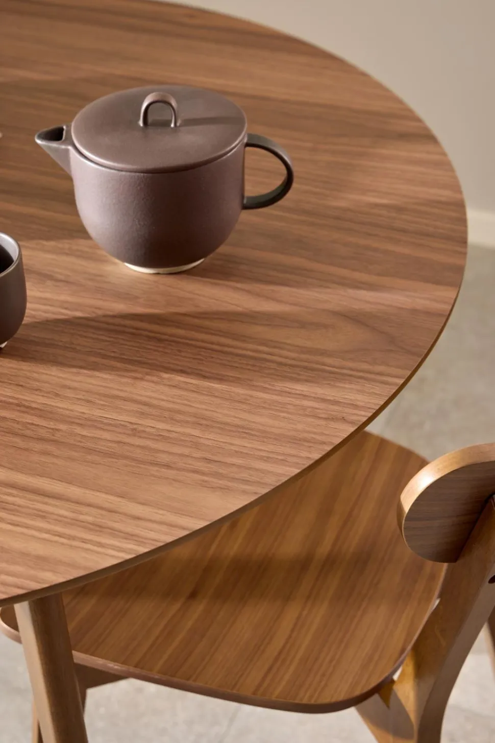 - Stół posiada okrągły kształt, co pozwala na optymalne wykorzystanie przestrzeni w małych pomieszczeniach.