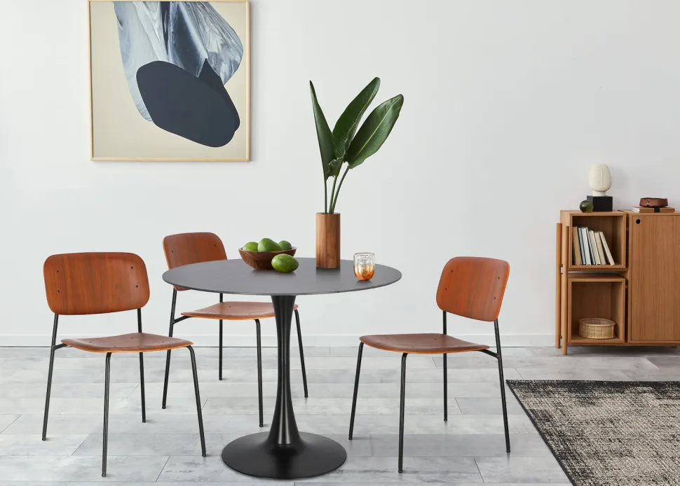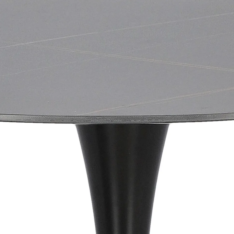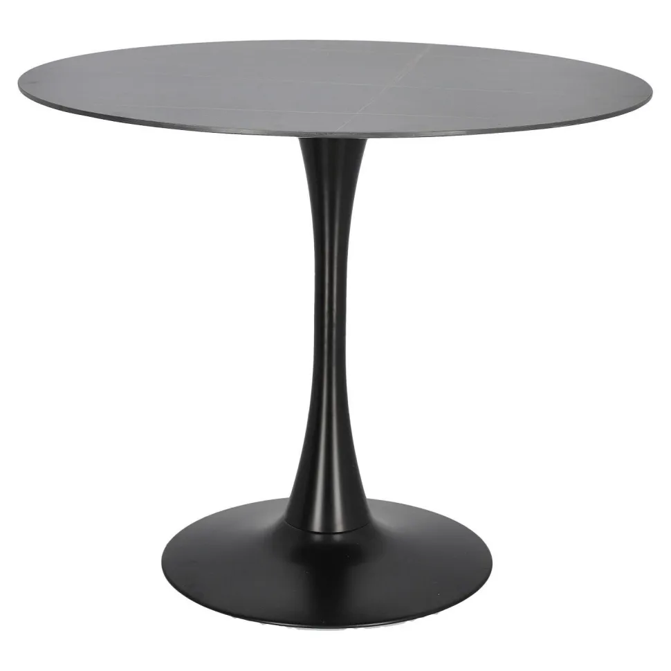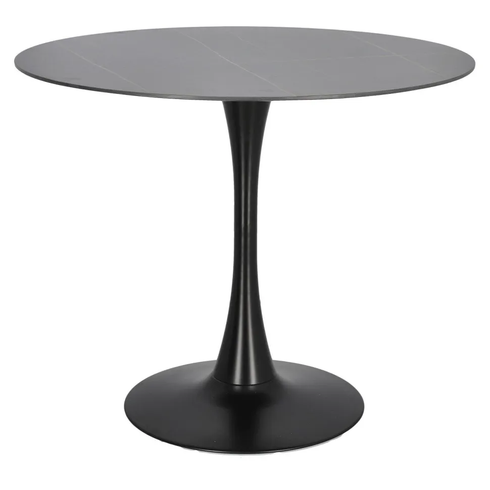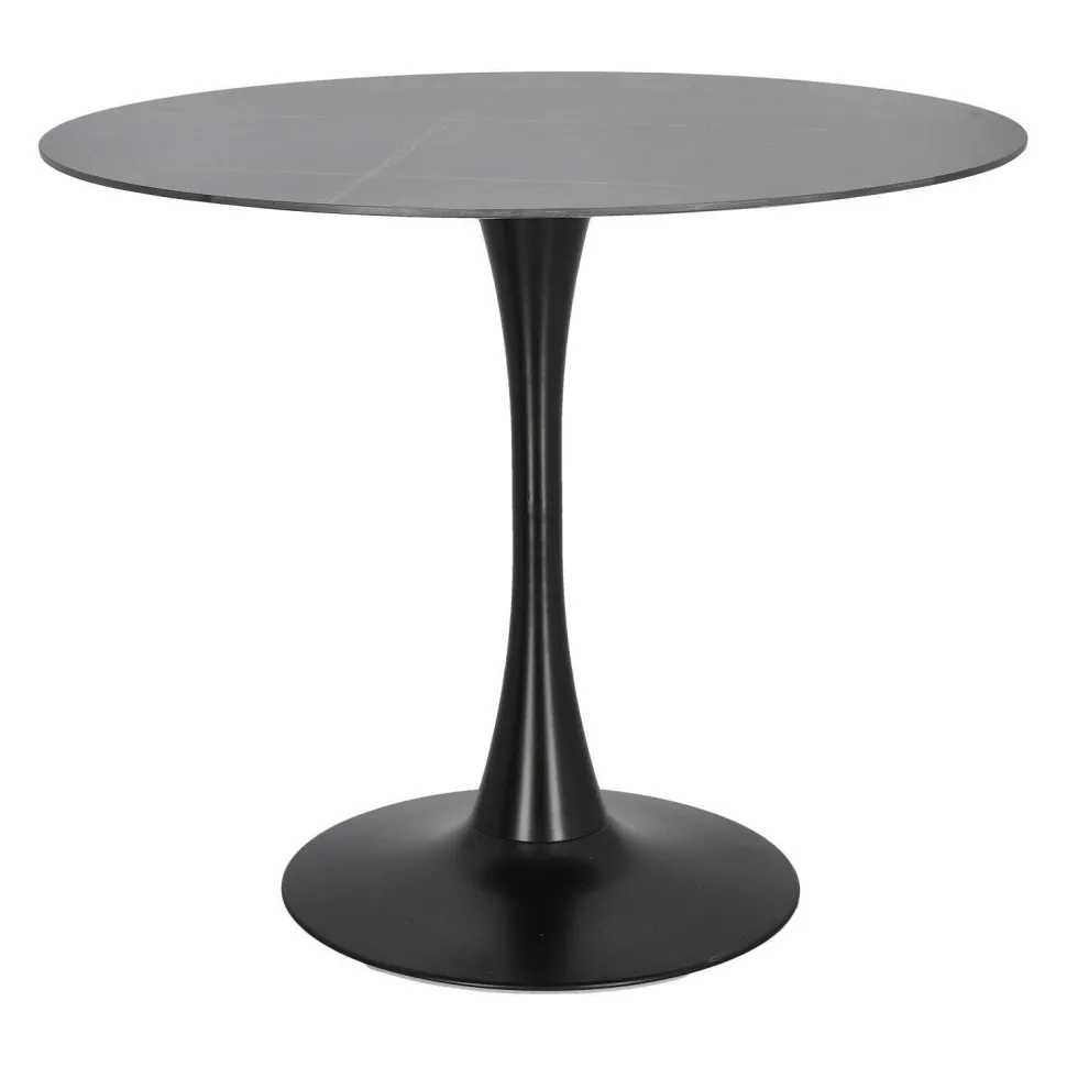 Stół Simplet Skinny z linii Premium Stone to najnowsza odsłona kultowego projektu stołu na jednej nodze. Stół z metalową, malowaną proszkowo nogą przypomina kształtem trąbkę. Taki model stołu jest bardzo często wybierany przez projektantów i nie jest to przypadkiem. Takie rozwiązanie jest bardzo uniwersalne. Pozwala ono na umieszczenie swobodnie krzeseł, co sprawdzi się szczególnie w mniejszych przestrzeniach. Innowacyjny i niezwykle modny stół Simplet posiada przepiękny okrągły blat z wytrzymałego spieku marmurowego. Dzięki wykorzystaniu takiego materiału, stół jest odporny na zarysowania, jest ognioodporny i co najważniejsze łatwy do utrzymania w czystości. Dlatego też stół Simplet Skinny Premium Stone sprawdzi się doskonale jako stół do kuchni lub stół do małej jadalni. Model dostępny jest w dwóch wariantach kolorystycznych, klasycznej bieli lub czerni, które świetnie skomponują się z każdym rodzajem mebli.