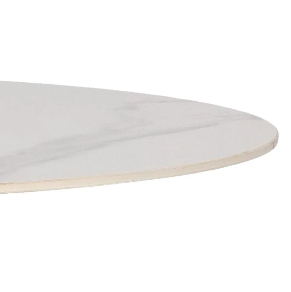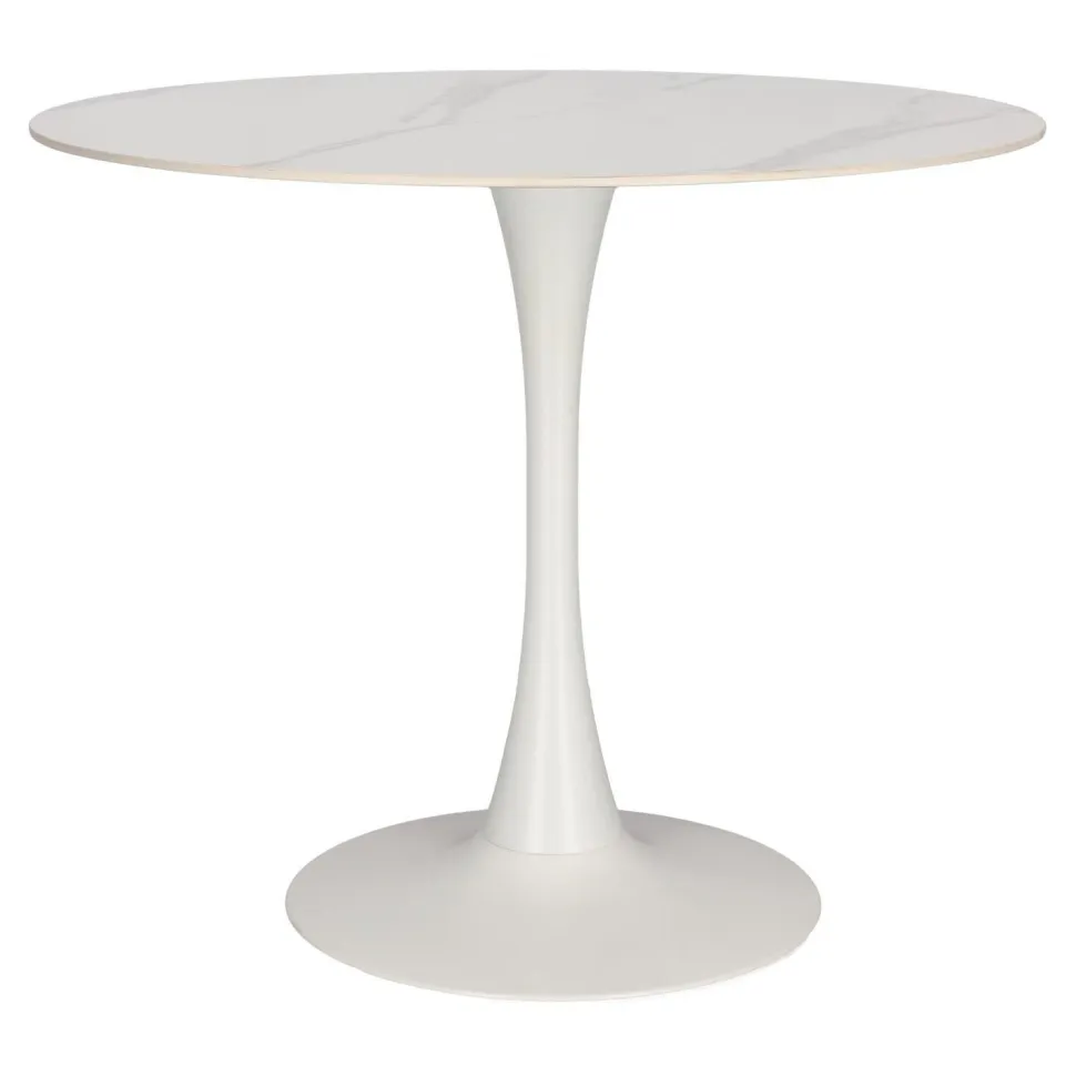 Stół Simplet Skinny z linii Premium Stone to najnowsza odsłona kultowego projektu stołu na jednej nodze. Stół z metalową, malowaną proszkowo nogą przypomina kształtem trąbkę. Taki model stołu jest bardzo często wybierany przez projektantów i nie jest to przypadkiem. Takie rozwiązanie jest bardzo uniwersalne. Pozwala ono na umieszczenie swobodnie krzeseł, co sprawdzi się szczególnie w mniejszych przestrzeniach. Innowacyjny i niezwykle modny stół Simplet posiada przepiękny okrągłyblat z wytrzymałego spieku marmurowego. Dzięki wykorzystaniu takiego materiału, stół jest odporny na zarysowania, jest ognioodporny i co najważniejsze łatwy do utrzymania w czystości. Dlatego też stół Simplet Skinny Premium Stone sprawdzi się doskonale jako stół do kuchni lub stół do małej jadalni. Model dostępny jest w dwóch wariantach kolorystycznych, klasycznej bieli lub czerni, które świetnie skomponują się z każdym rodzajem mebli.