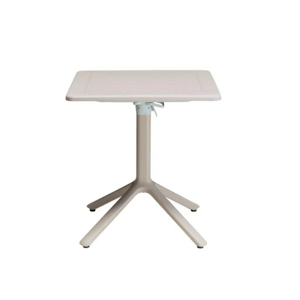Jego główną zaletą jest wszechstronność i solidna konstrukcja, którą można stosowana w każdych warunkach. Blat wykonany z technopolimeru z łukiem pod spodem oraz czteronożna podstawa ze wzmocnionego włóknem technopolimeru jest nie tylko trwała, ale także lekka. Stół Eco może być zarówno wewnątrz, jak i na zewnątrz, co stanowi podstawę do stosowania w różnych warunkach – tarasach czy ogrodach. Jego trwała konstrukcja zapewnia, że będzie dostępny przez wiele lat, niezależnie od warunków. Aluminiowa kolumna centralna sprawia, że konstrukcja jest lekka i łatwa w transporcie. Dostępny w trzech kolorach – antracytowym, beżowym i białym. Stół Eco idealnie komponuje się z aranżacjami wnętrz, dodając im wyjątkowego charakteru i stylu.