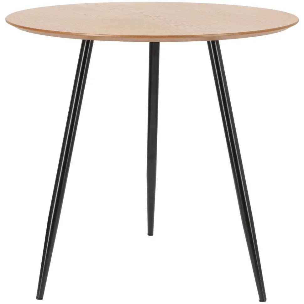 Okrągły STÓŁ SOTTILE został zabarwiony na kolor drewna, a jego nietuzinkowe zakończenia dodają mu uroku. Podstawą stołu są trzy smukłe czarne, metalowe nogi. Ten nowoczesny mebel został wykonany z najwyższej jakości materiałów-płyty laminowanej oraz metalu, które gwarantują zachowanie naszego produktu w czystości. Stół odnajdzie swoje zastosowanie w jadalni, salonie czy nawet w restauracjach.