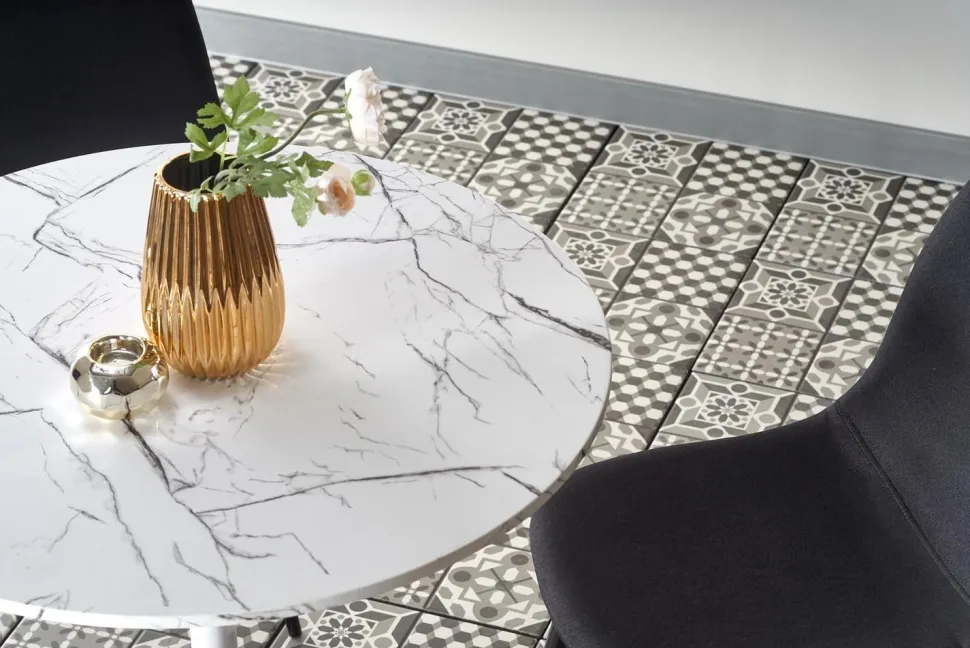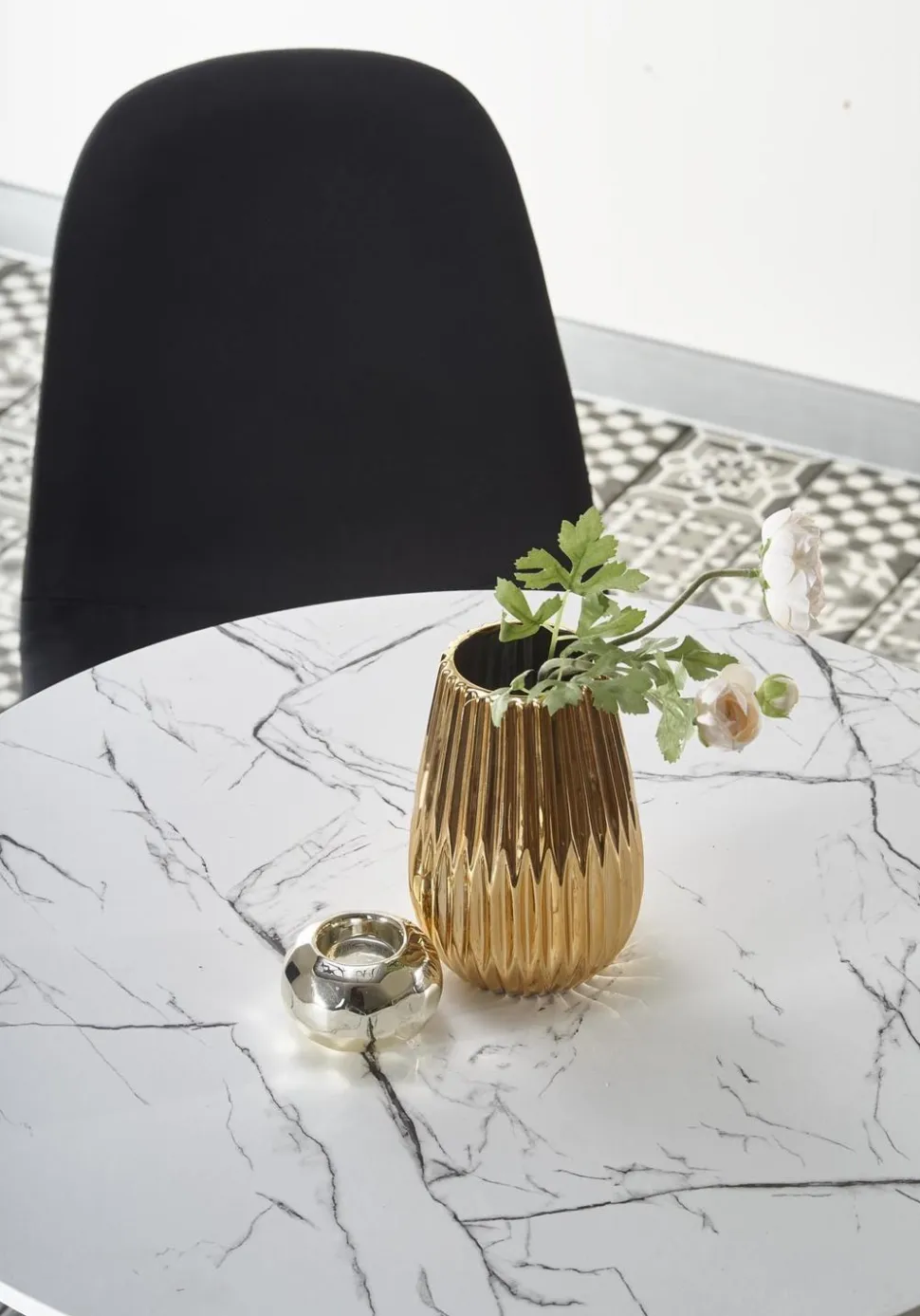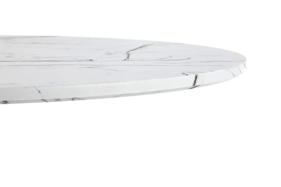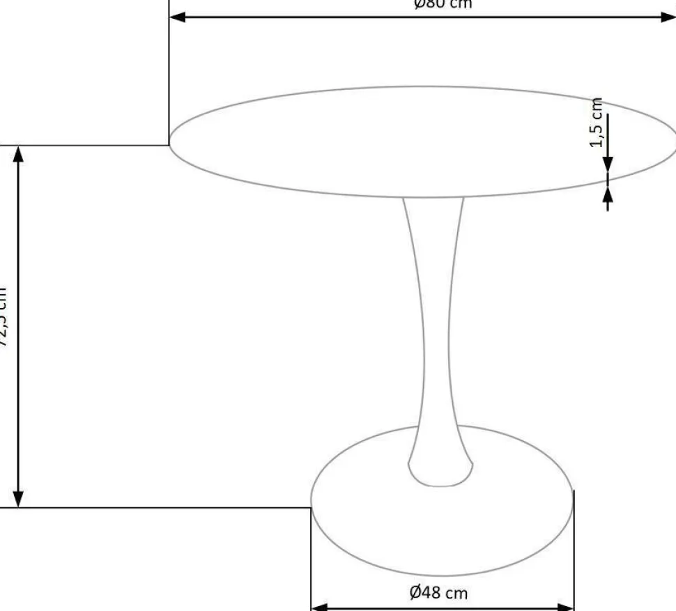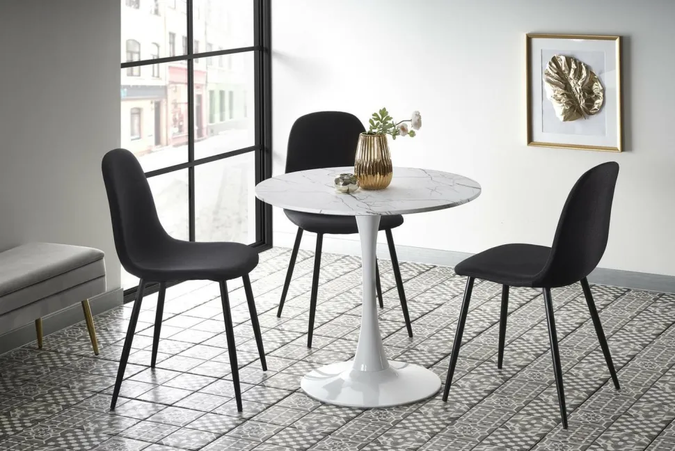 Blat stołu ma kształt okrągły o średnicy 80 cm, a wysokość wynosi 73 cm.Blat stołu Verden został wykonany z MDF okleinowanego, co zapewnia trwałość i łatwość w utrzymaniu czystości. Kolor biały marmur nadaje meblowi elegancki i luksusowy wygląd. Noga stołu jest wykonana z białej stali malowanej proszkowo, co dodaje mu nowoczesnego wyglądu.Stół Verden jest łatwy w montażu i posiada tylko jedną nogę, co pozwala na swobodne ustawienie krzeseł wokół stołu.