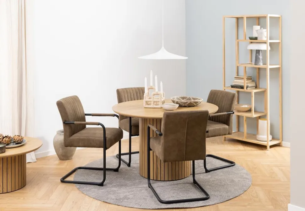 Czy jesteś gotowy, aby zmodernizować swój salon za pomocą nowoczesnego i eleganckiego stołu? Wtedy Yale może być właśnie tym, czego szukasz! Ten mebel w stylu skandynawskim jest naprawdę piękny, wykonany z płyty MDF laminowanej fornirem w kolorze dębu – bez trudu dopasuje się do każdego stylu wystroju. Szczególnie podoba nam się wyjątkowa cylindryczna podstawa wykonana z cienkich pionowych listewek podtrzymujących okrągły blat o średnicy 120 cm. Niezależnie od tego, czy wybierzesz stół Yale do swojego domu, czy restauracji – jego nowoczesny urok na pewno sprawi, że wszyscy będą oniemieli!