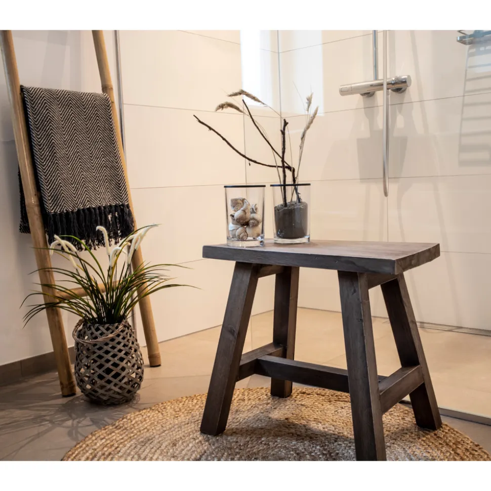 - Naturalny kolor stołka to uniwersalny odcień, który łatwo wpisuje się w różne style wnętrzarskie.