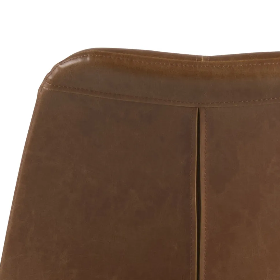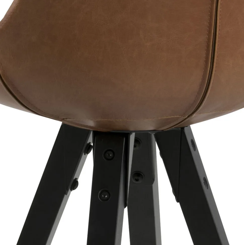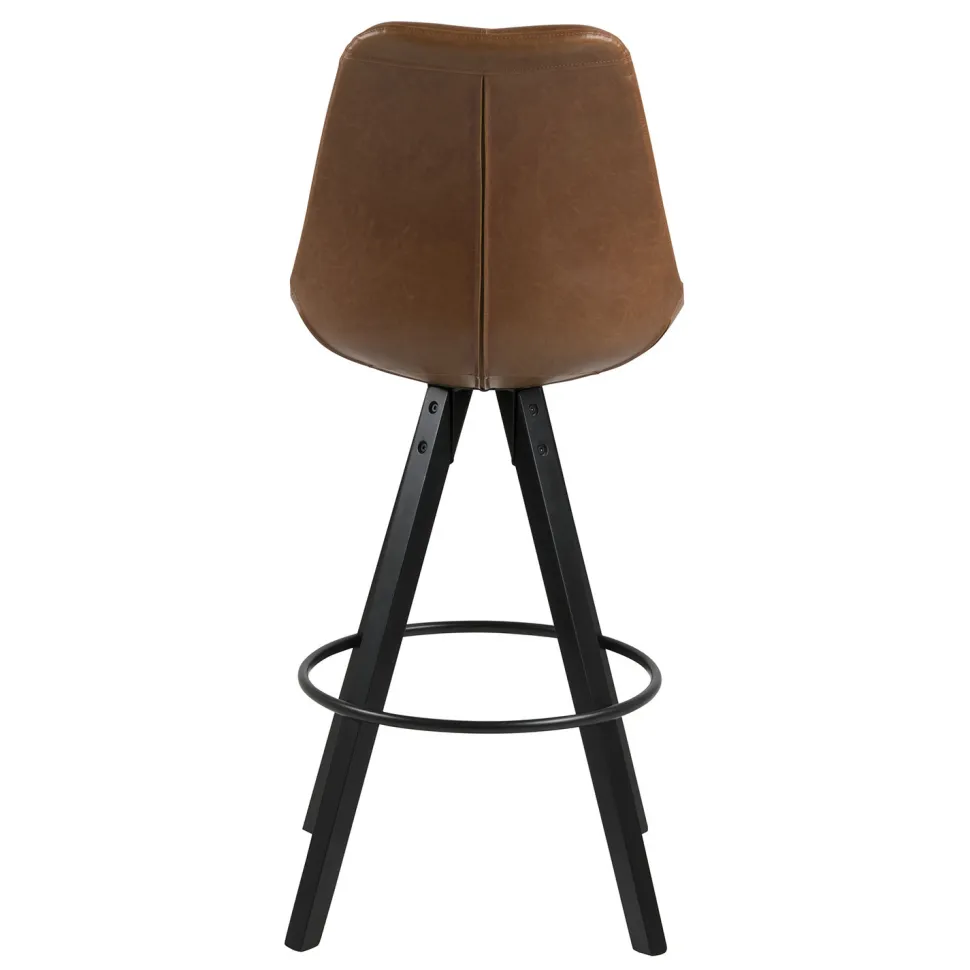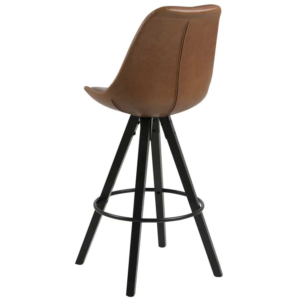 Stołek barowy Dima Brandy to mebel użytkowy, który sprawdzi się doskonale w przestrzeni publicznej, ale również domowej, przestrzennej kuchni. Siedzisko tapicerowane jest skórą ekologiczną w kolorze brązowym. Podstawa wykonana została z drewna kauczukowego barwionego na kolor czarny.