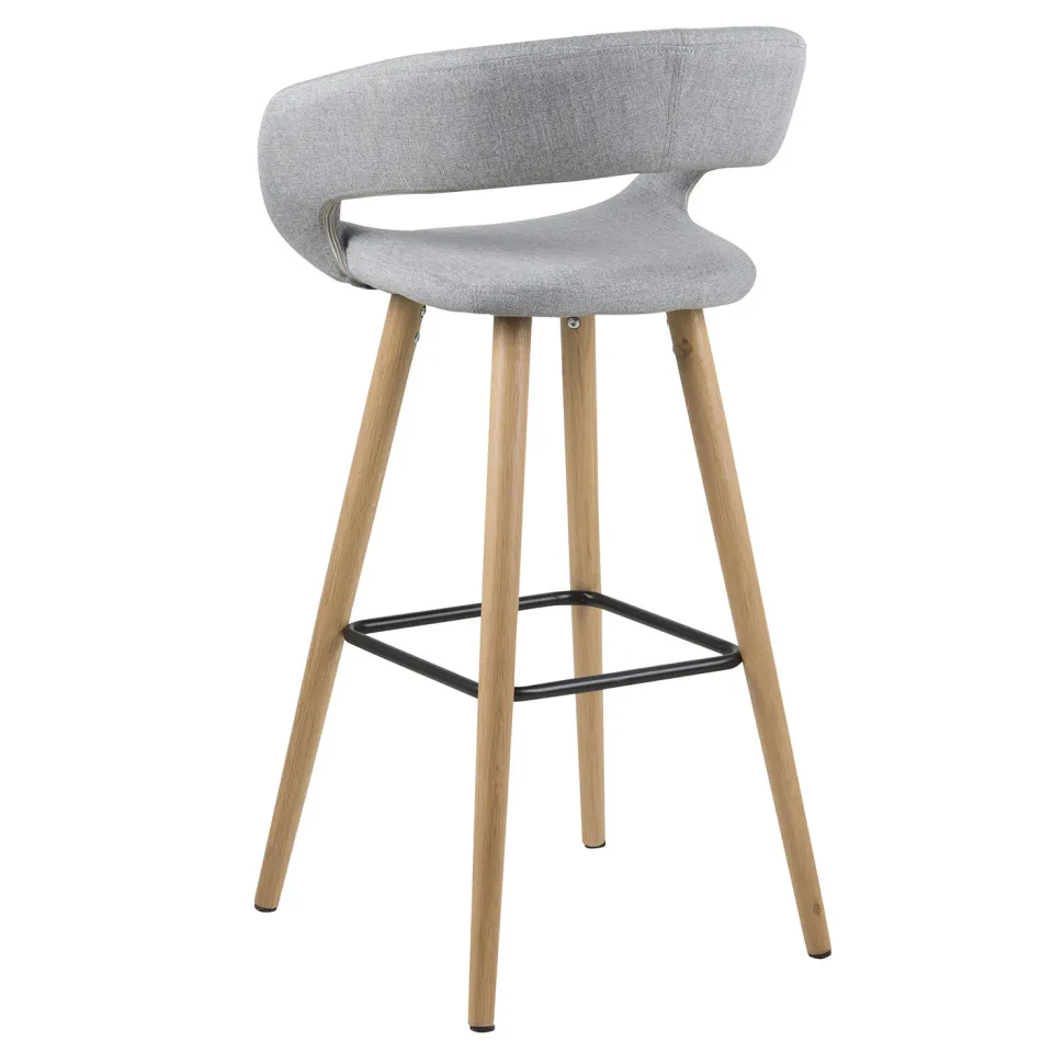 Styl nowoczesny daje architektom i dekoratorom wielkie pole do popisu. Styl ten nie jest jasno określony, dzięki czemu możemy dowolnie kombinować z końcowym efektem nowoczesnych przestrzeni. Stołek barowy Grace to doskonale rozwiązanie do otwartej kuchni lub jadalni z wysoką wyspą. Uwagę przyciąga tapicerowane siedzisko o ciekawym gładko zakończonym kształcie. Siedzisko obite miękką tkaniną dostępne jest w dwóch odcieniach eleganckiej szarości, która w idealny sposób będzie współgrać z resztą aranżacji. Podstawa to natomiast cztery dębowe nogi pokryte warstwą oleju, która uwydatnia naturalny kolor oraz walory drewna. Dodatkowo zamieszczono czarny metalowy wspornik, łączący ze sobą nogi podstawy, który sprawdzi się w roli wygodnego podnóżka.