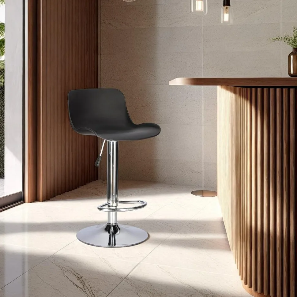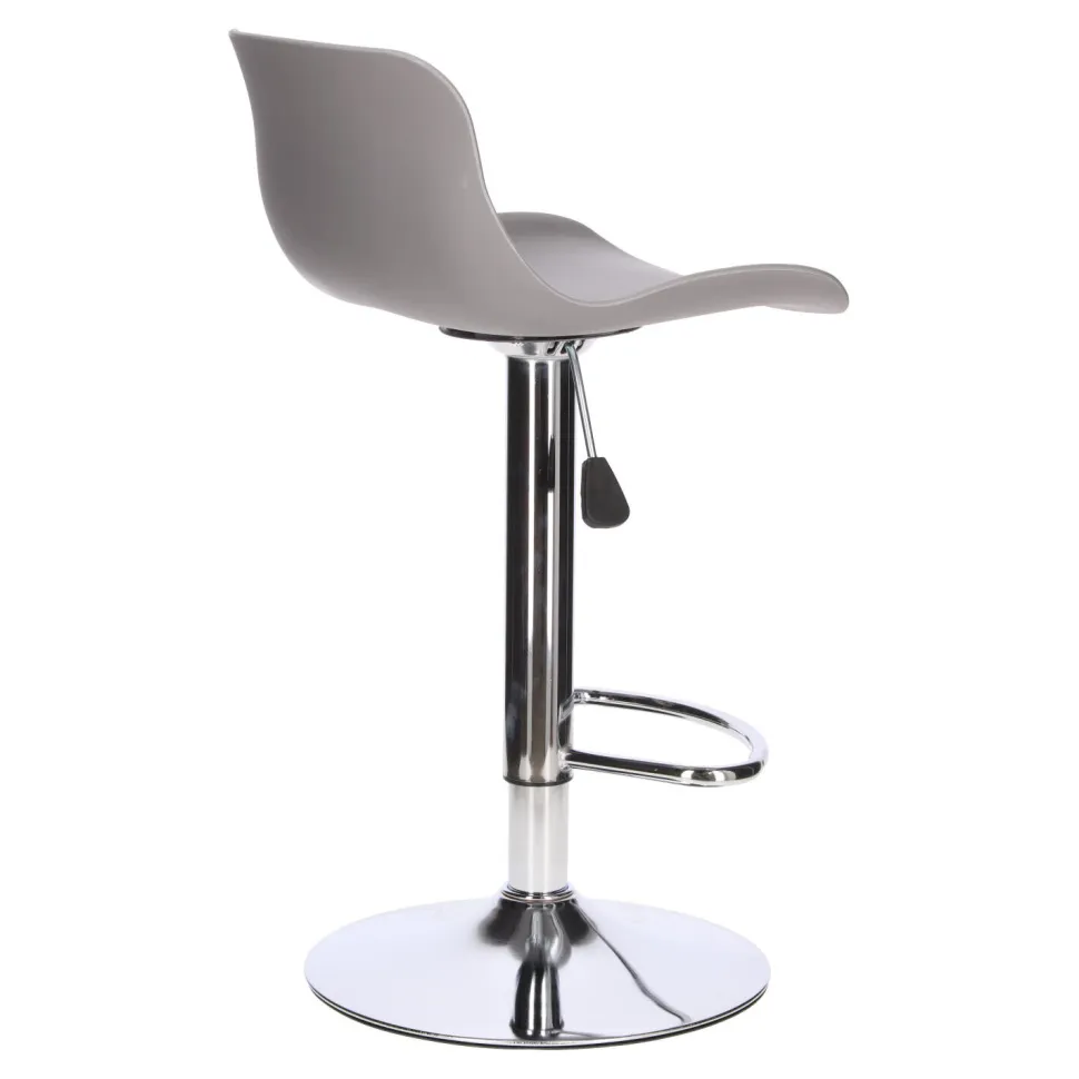 - Chromowana podstawa w kształcie trąbki nadaje stołkowi eleganckiego wyglądu.