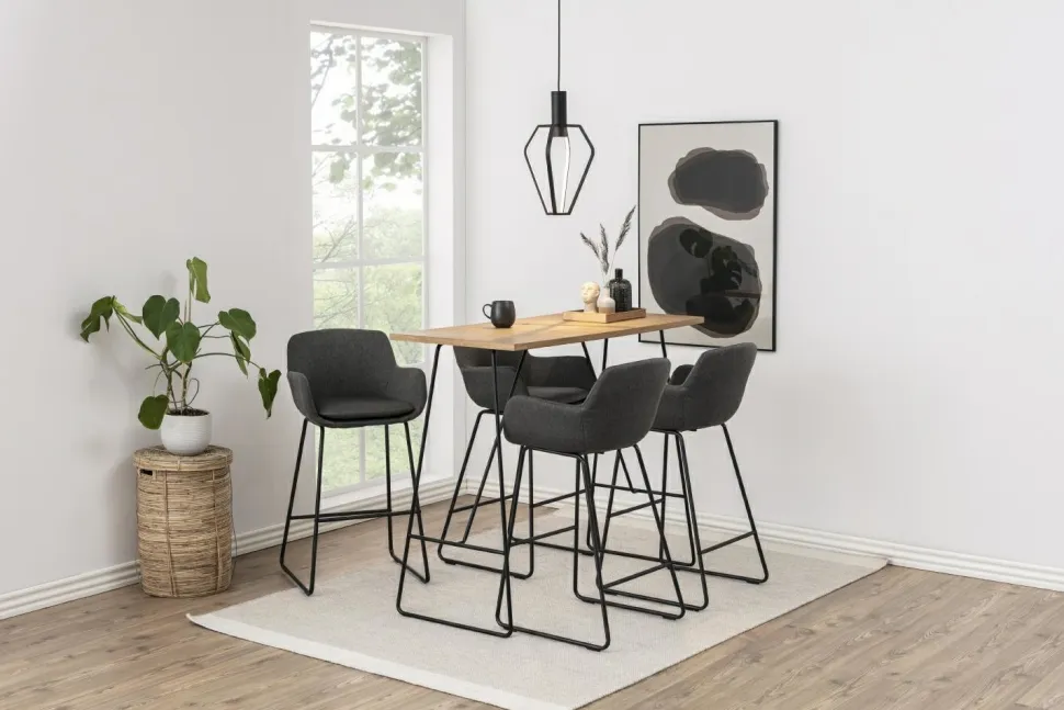 Bardzo wygodny stołek barowy Lisa. Stołek w nowoczesnym stylu utrzymany jest w przygaszonej kolorystyce. Wykonana z metalu malowanego proszkowo na kolor czarny podstawa idealnie współgra z siedziskiem. Siedzisko wraz z oparciem są wymodelowane jako jeden element. Całość obita jest tkaniną w szarym kolorze. Świetny wybór do nowoczesnego baru lub minimalistycznej w kuchni jako siedzisko przy wyspie. Stonowane kolory dają wiele możliwości aranżacji.