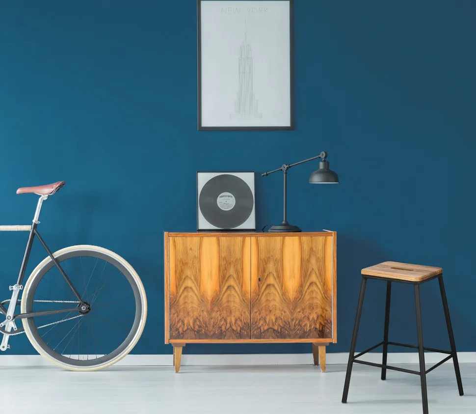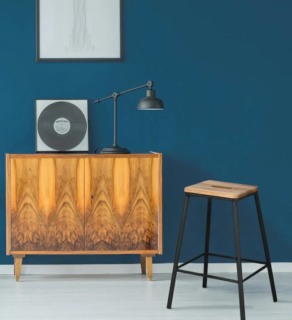 Stołek barowy z drewnianym siedziskiem w skandynawskich aranżacjach