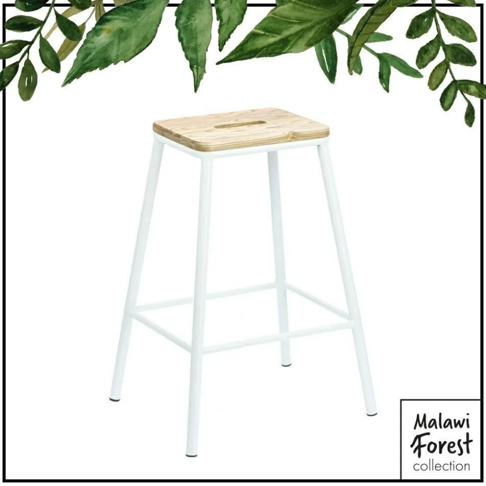 Stołek barowy Seattle White wchodzi w skład specjalnie wyselekcjonowanej gamy produktów inspirowanych naturą Malawi Forest Collection.