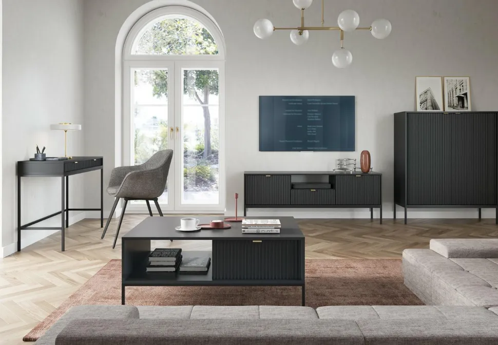 Elegancki stolik z ryflowanym frontem – Delicious czarny | Intesi