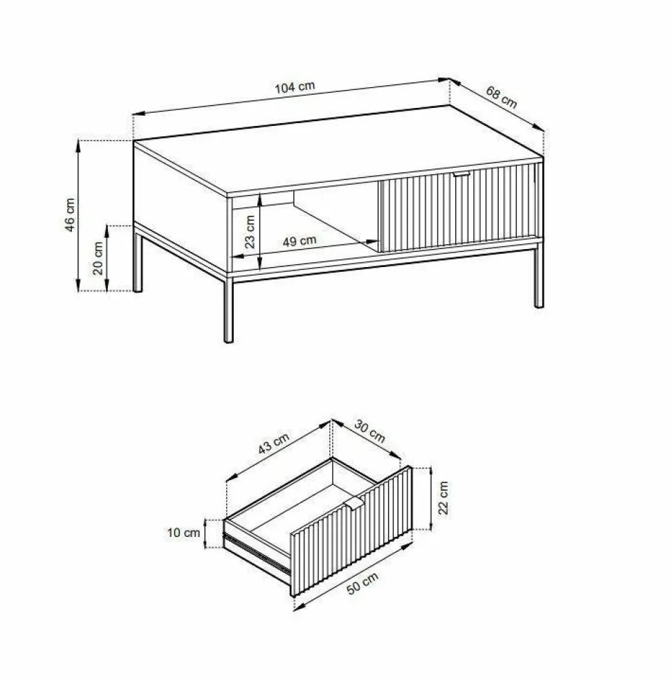 Stół Delicious Table to stylowy dodatek do każdego pomieszczenia. Nie tylko uzupełni on każdy wystrój wnętrza, ale także z pewnością przyciągnie uwagę gości. Unikalny, karbowany front szuflady jest wzmocniony elegancko wykonanym aluminiowym uchwytem, dzięki czemu stolik Delicious jest olśniewającym, wyróżniającym się elementem. Duży blat o szerokości 104 cm i głębokości 68 cm zapewnia mnóstwo miejsca na rozmowy przy kawie z przyjaciółmi lub rozłożenie książek i innych materiałów do czytania. Co więcej, cienkie metalowe nogi sprawiają, że stolik jest lekki, zapewniając jednocześnie doskonałą stabilność dzięki solidnej konstrukcji. Stolik Delicious ma wszystko – zarówno szykowny wygląd, jak i praktyczne zastosowanie – więc kup go już dziś i przygotuj się na niezapomniane wrażenia!