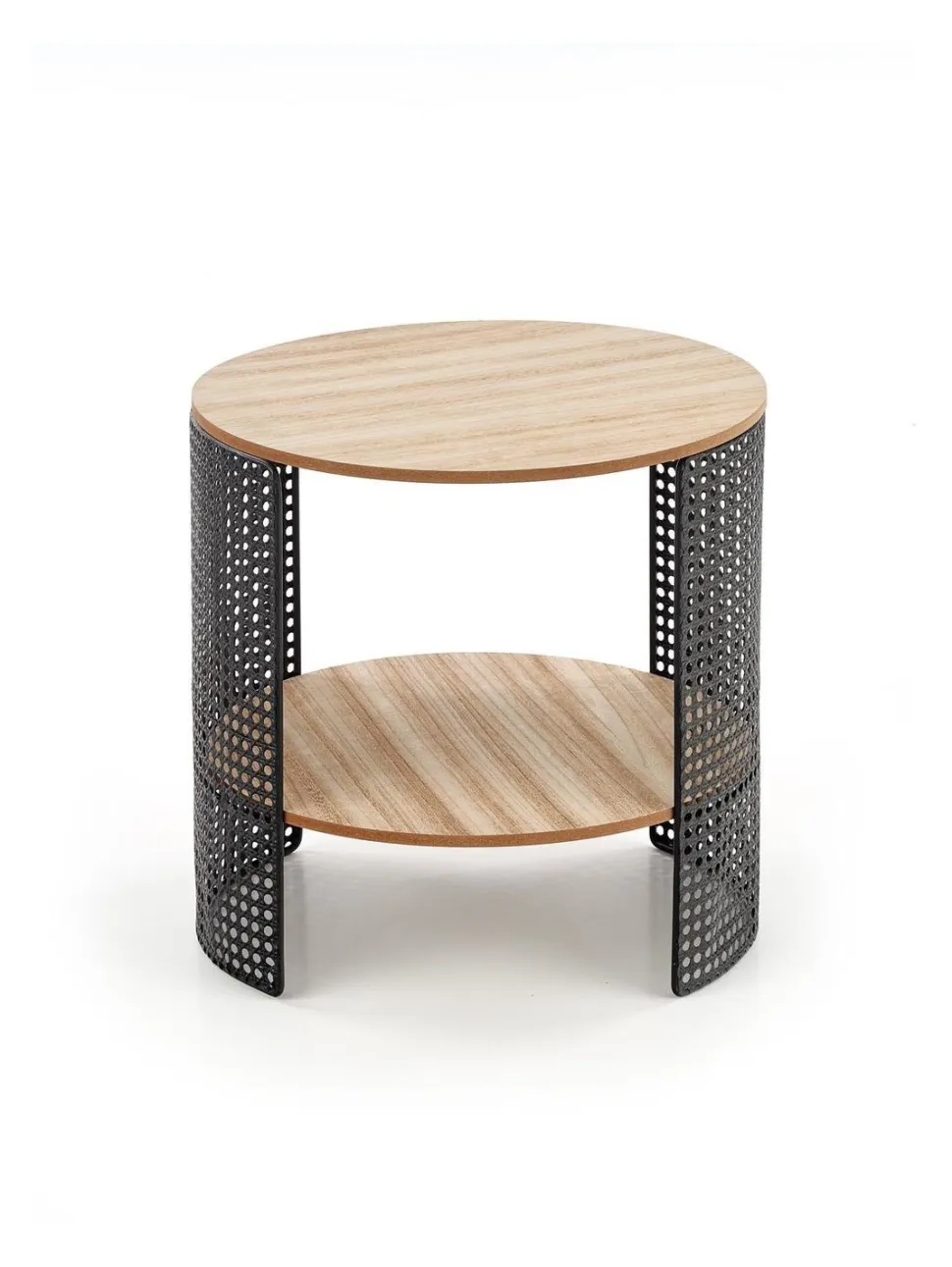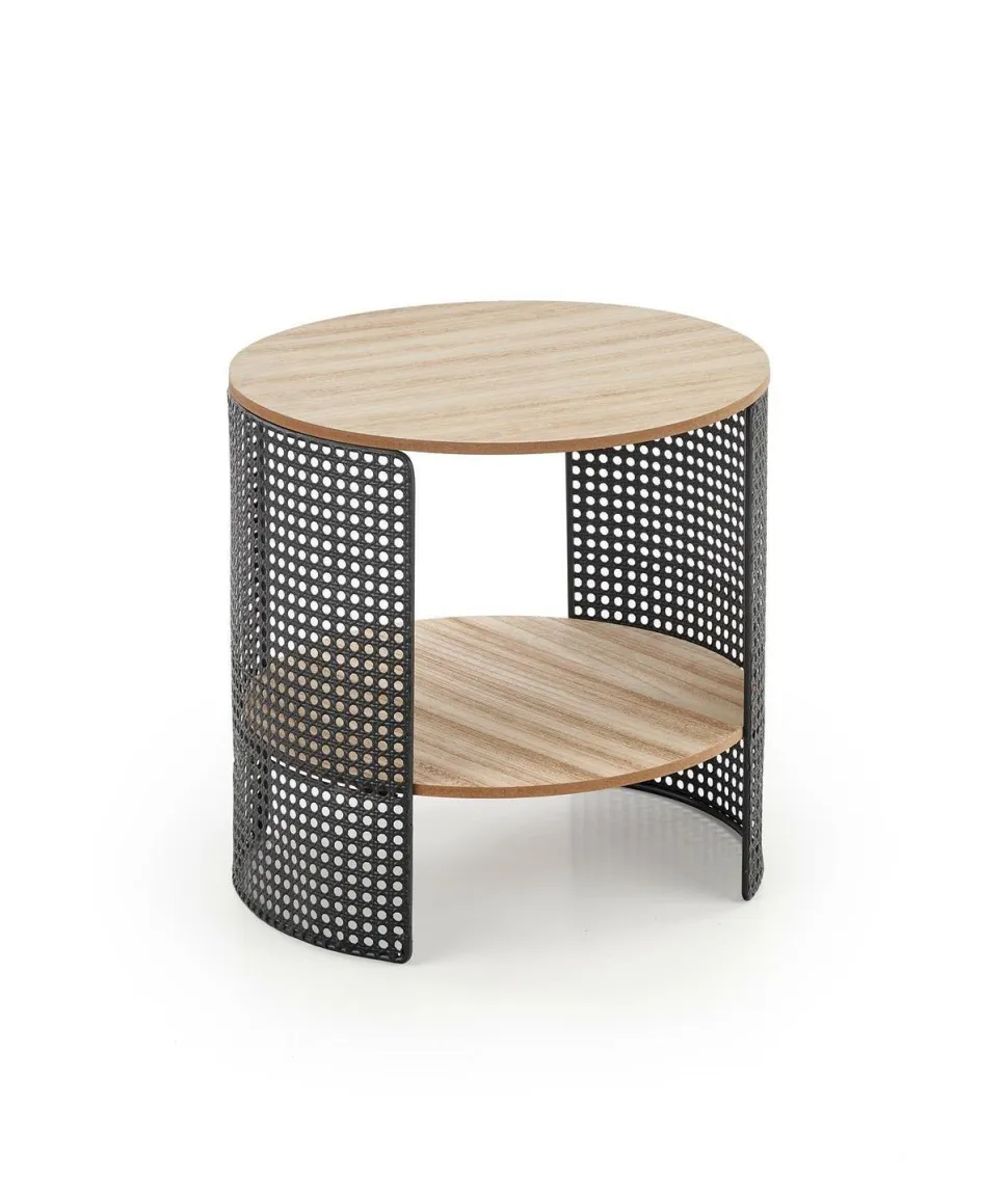Materiały, z których został wykonany stolik, to MDF z okleiną naturalną oraz stal malowana proszkowo. Dzięki temu połączeniu stolik kawowy Collo jest nie tylko solidny i trwały, ale również łatwy w utrzymaniu czystości. Możesz być pewien, że będzie Ci służył przez wiele lat, zachowując swoje piękno i funkcjonalność.Jedną z największych zalet stolika kawowego Collo jest jego kształt. Okrągły design sprawia, że staje się on centralnym punktem Twojego salonu, przyciągając wzrok i nadając pomieszczeniu wyjątkowego charakteru.