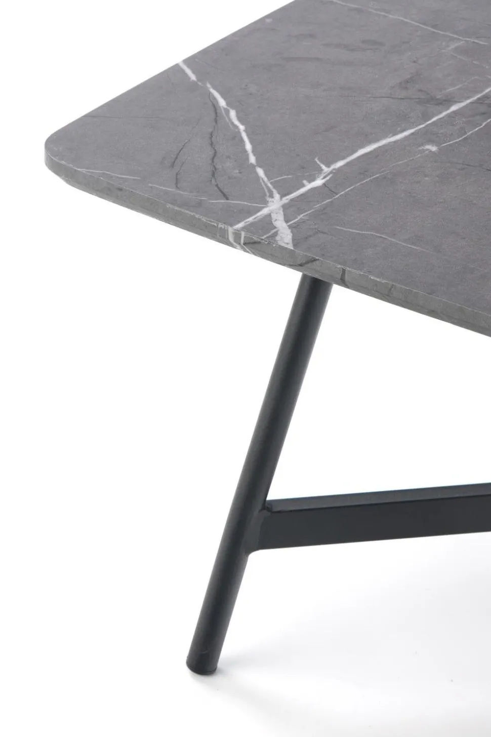 Popielaty marmurowy kolor blatu stolika kawowego Farra doskonale komponuje się z czarnym stelażem, tworząc niebanalne połączenie, które z pewnością przyciągnie uwagę gości.Stolik kawowy Farra to nie tylko designerski mebel, ale przede wszystkim funkcjonalne i praktyczne rozwiązanie dla każdego, kto szuka idealnego miejsca na kawę i chwilę relaksu.