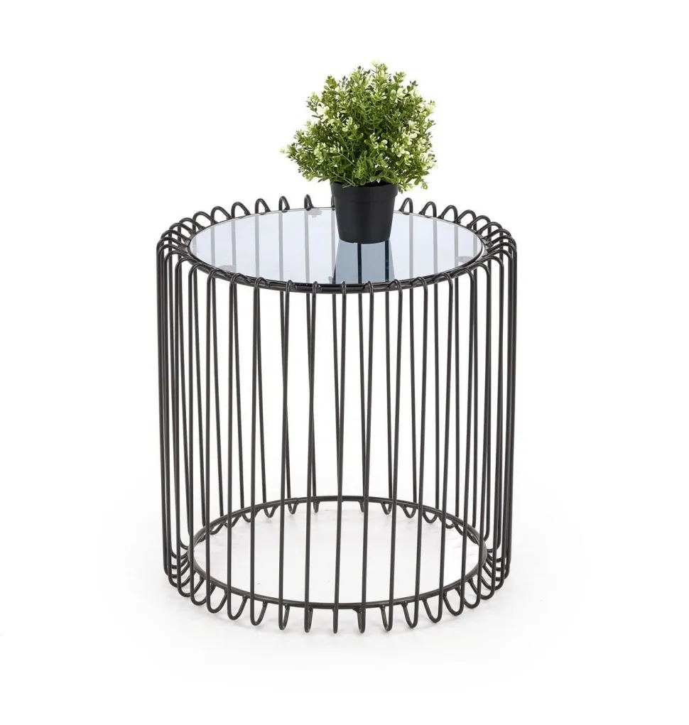 Blat w kształcie okręgu o wymiarach 45/45 cm jest przezroczysty, co nadaje mu lekkości i elegancji. Kolor dymiony dodaje mu niepowtarzalnego uroku, a czarny stelaż nadaje mu nowoczesnego charakteru.Ta propozycja doskonale sprawdzi się w każdym wnętrzu, zarówno w małych, jak i większych przestrzeniach. Dzięki swoim kompaktowym wymiarom, stolik kawowy nie zajmuje zbyt wiele miejsca, a jednocześnie zapewnia wygodną powierzchnię do postawienia kawy, herbaty czy ulubionej lektury.