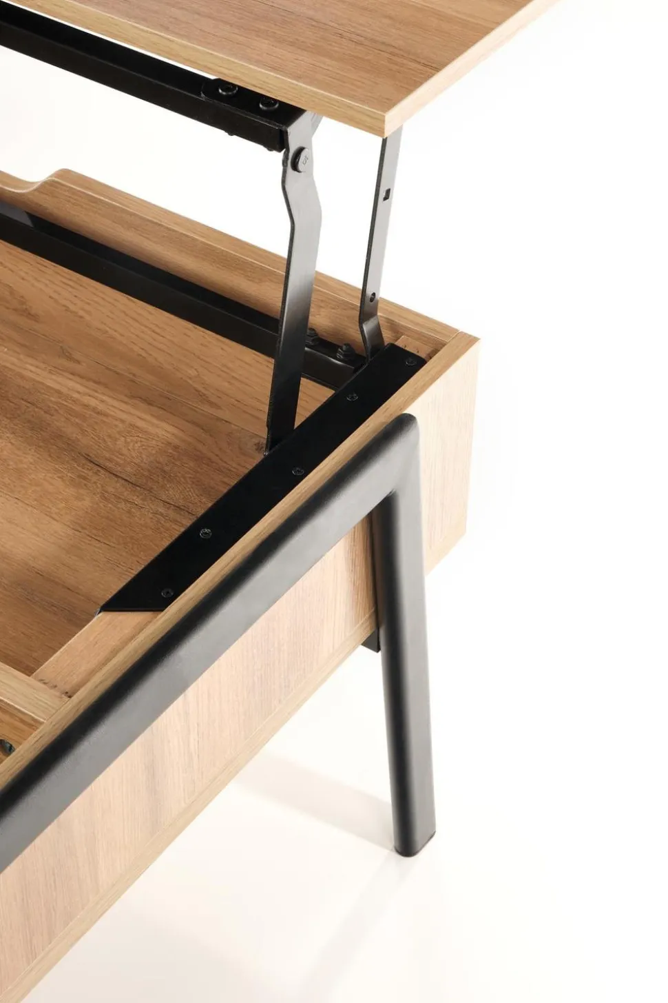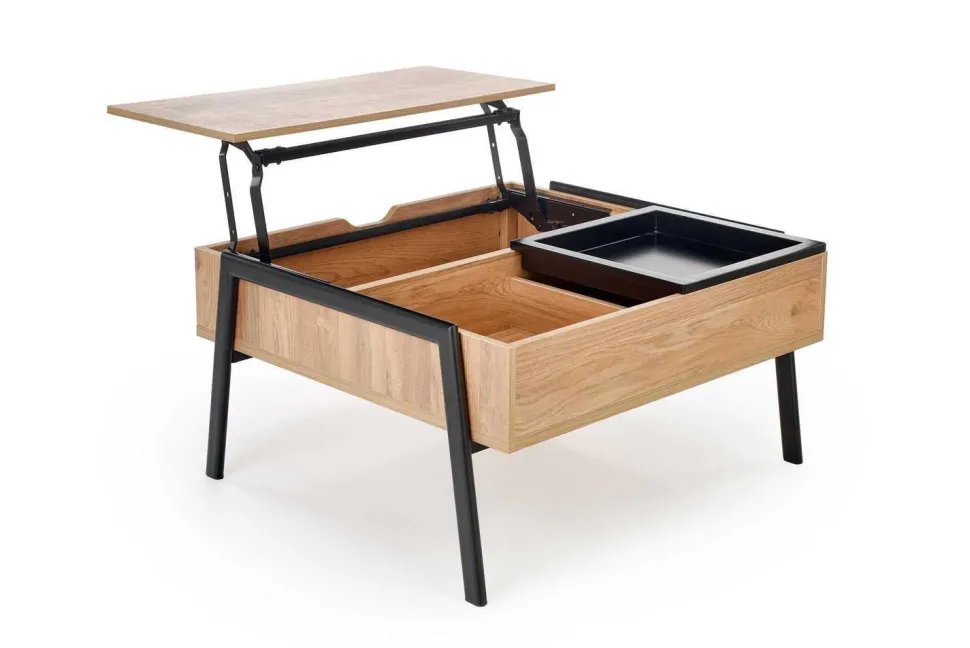 - Funkcjonalność – stolik kawowy Mobis posiada regulowany blat, który można podnieść do góry na wysokość 64cm