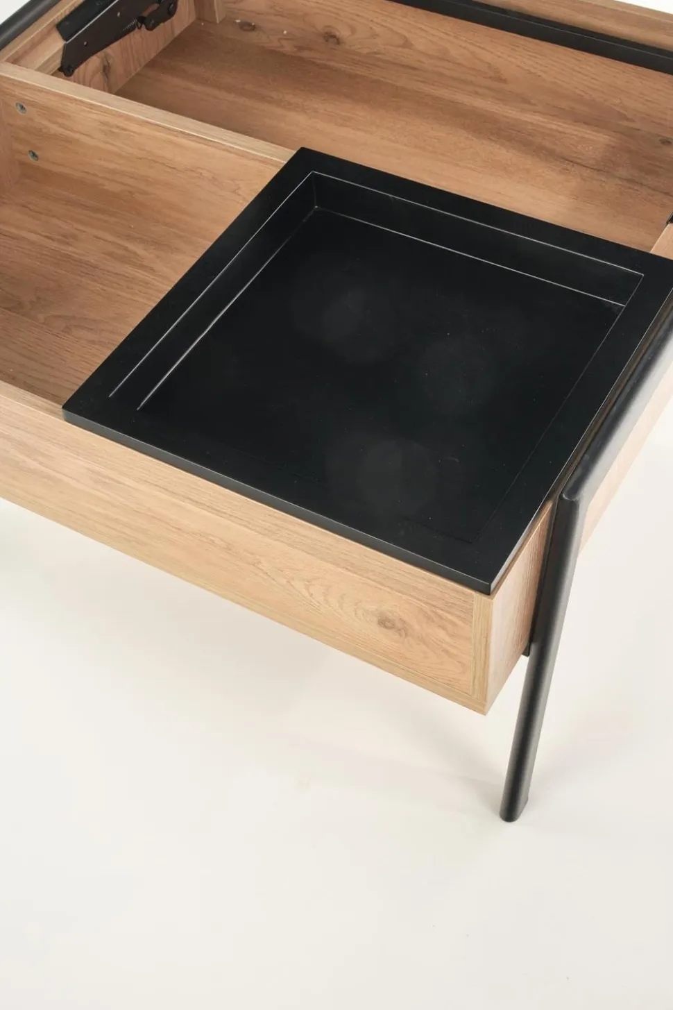 - Estetyka – stolik w kolorze naturalnym i czarnym prezentuje się nowocześnie i stylowo