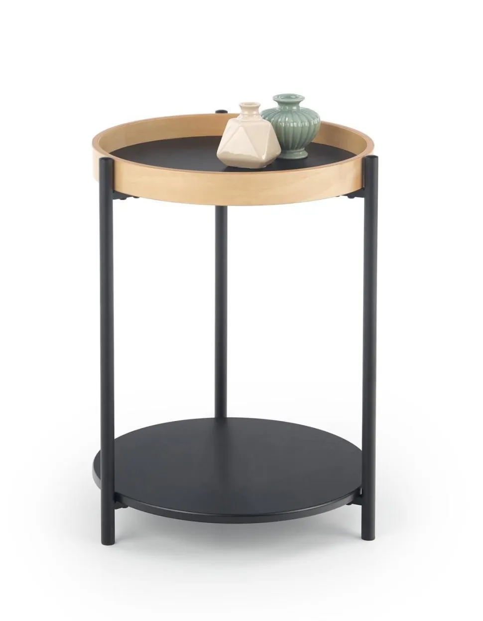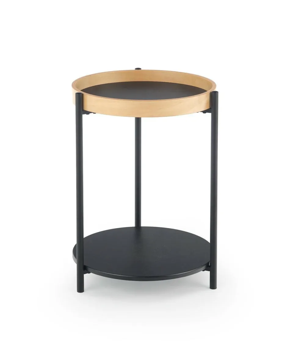 Kolor dąb naturalny w połączeniu z czarnym stelażem tworzy harmonijną kompozycję, która pasuje zarówno do klasycznych, jak i nowoczesnych aranżacji.Stolik Polo został zaprojektowany z myślą o Twojej wygodzie. Jego okrągły blat sklejki giętej oferuje dużo miejsca na kawę, herbatę, książki czy dekoracje. Dodatkowo, półka dolna zapewnia dodatkową przestrzeń do przechowywania czasopism, pilotów czy innych drobiazgów, które chcesz mieć zawsze pod ręką.