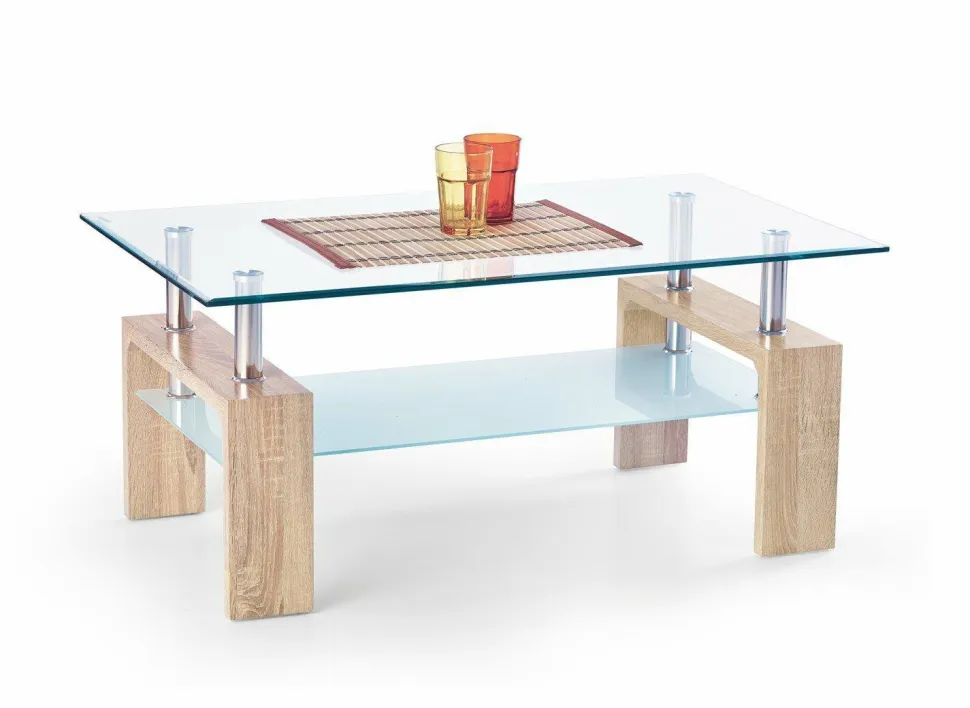 Szukasz klasycznego, wszechstronnego mebla, który będzie idealny do każdego wnętrza? Nie szukaj dalej niż stolik kawowy Rafes Intro! Ponadczasowa konstrukcja wykonana jest z wytrzymałej płyty MDF laminowanej w kolorze dąb sonoma, z metalową ramą i stylowym szklanym blatem. Jego prostokątny kształt sprawia, że świetnie pasuje do salonu, a dolna półka zapewnia cenne miejsce do przechowywania. Ma tradycyjny styl konstrukcji i ma odpowiednią wysokość (45 cm) i szerokość (100 cm), aby idealnie pasować do niemal każdej przestrzeni. Górna część mebla wykonana jest z przezroczystego szkła, co dodaje mu elegancji, czyniąc go idealnym wyborem do każdego nowoczesnego lub tradycyjnego domu. Niezależnie od tego, czy szukasz dodatkowego miejsca do siedzenia, czy po prostu chcesz dodać trochę nowoczesności do swojego salonu, stolik kawowy Rafes Intro z pewnością ożywi Twój wystrój!