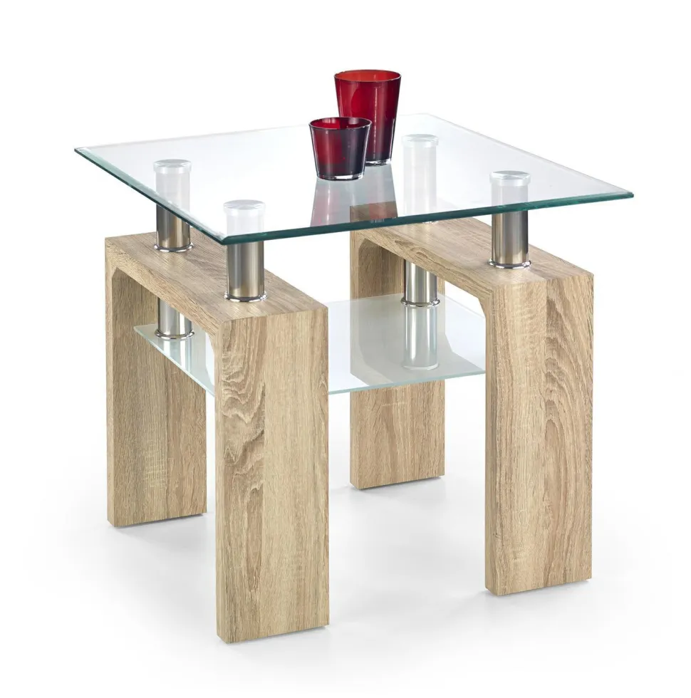 Szukasz klasycznego, wszechstronnego mebla, który będzie idealny do każdego wnętrza? Nie szukaj dalej niż stolik kawowy Rafes! Ponadczasowa konstrukcja wykonana jest z wytrzymałej płyty MDF laminowanej w naturalnym kolorze, z metalową ramą i stylowym szklanym blatem. Jego kwadratowy kształt sprawia, że świetnie pasuje do salonu, a dolna półka zapewnia cenne miejsce do przechowywania. Ma tradycyjny styl konstrukcji i ma odpowiednią wysokość (55 cm) i szerokość (60 cm), aby idealnie pasować do niemal każdej przestrzeni. Górna część mebla wykonana jest z przezroczystego szkła, co dodaje mu elegancji, czyniąc go idealnym wyborem do każdego nowoczesnego lub tradycyjnego domu. Niezależnie od tego, czy szukasz dodatkowego miejsca do siedzenia, czy po prostu chcesz dodać trochę nowoczesności do swojego salonu, stolik kawowy Rafes z pewnością ożywi Twój wystrój!