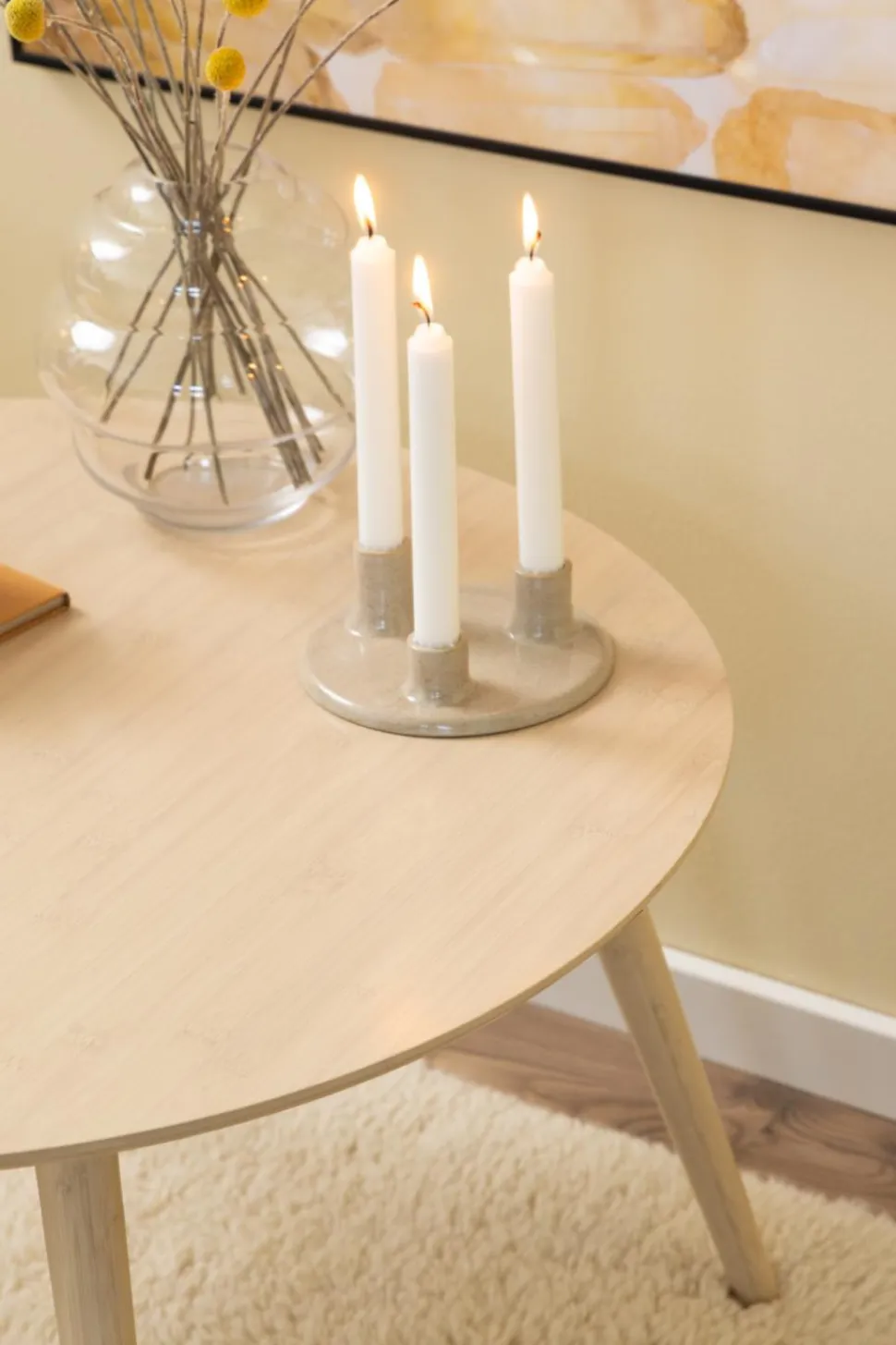 Stolik kawowy Roslin to idealne połączenie elegancji i funkcjonalności. Wykonany z lakierowanego bambusa, zarówno blat, jak i podstawa charakteryzują się naturalnym wyglądem i skandynawskim stylem, który wprowadza do wnętrza ciepło i przytulność. Okrągły kształt stolika sprawia, że doskonale wpisuje się w różnorodne aranżacje, a smukłe nogi podkreślają jego lekkość i estetykę. Stolik został zaprojektowany z myślą o przytulnych chwilach spędzonych z rodziną i przyjaciółmi, idealny do gier planszowych czy delektowania się herbatą.