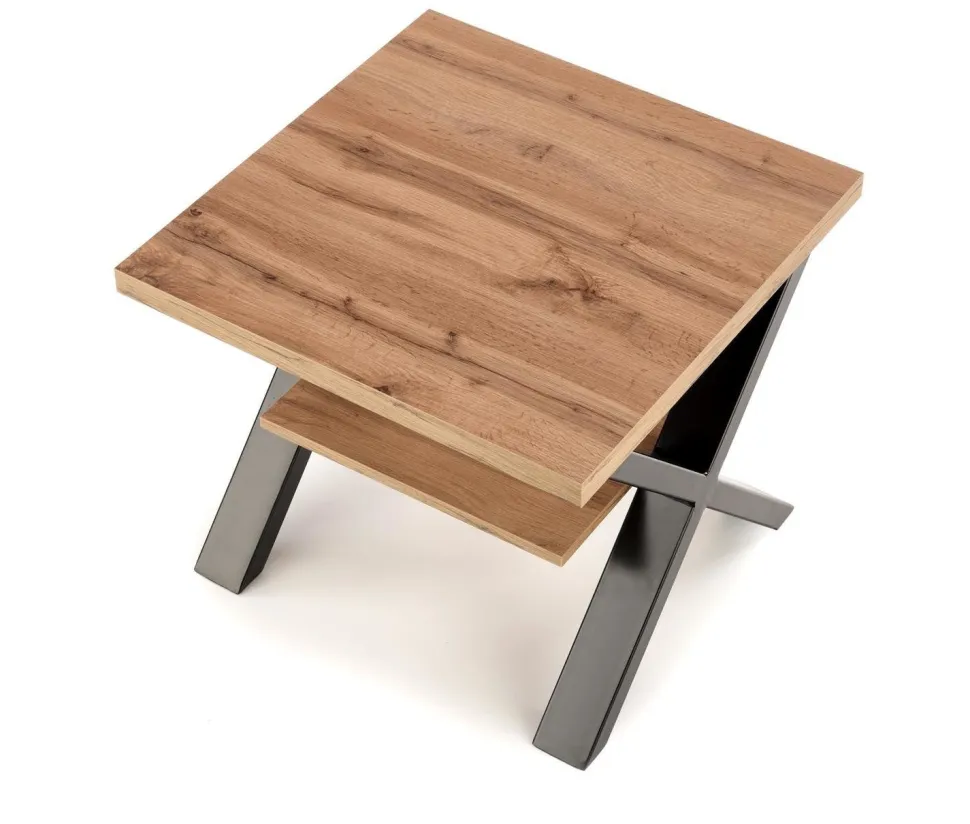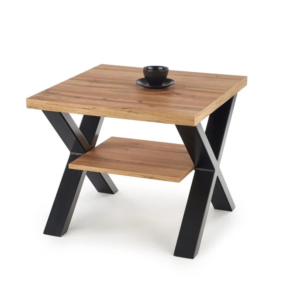 Stolik kawowy Venom S to odważny element. Elegancki i stylowy design ma blat z płyty meblowej w kolorze dębu wotan, obrzeże pokryte tworzywem ABS dla trwałości i malowane proszkowo stalowe nogi w kolorze czarnym. Wymiary to 65/65/55 cm. Dodaj ten nowoczesny styl do swojej przestrzeni życiowej już dziś!
