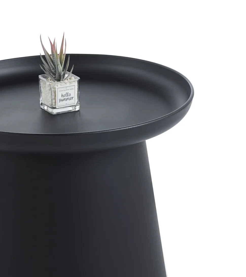 Niezwykle elegancki i nowoczesny stolik kawowy Xena o średnicy 50 cm i wysokości 46 cm, to doskonałe uzupełnienie każdego wnętrza. Wykonany z wysokiej jakości polipropylenu w kolorze czarnym, zaskakuje swoją prostotą i funkcjonalnością. Okrągły blat stolika sprawia, że jest on idealny do codziennego użytku, a jednocześnie stanowi wyjątkowy element dekoracyjny. Stolik Xena, dzięki swojemu uniwersalnemu designowi, sprawdzi się zarówno w salonie, pokoju młodzieżowym, biurze, jak i gabinecie.