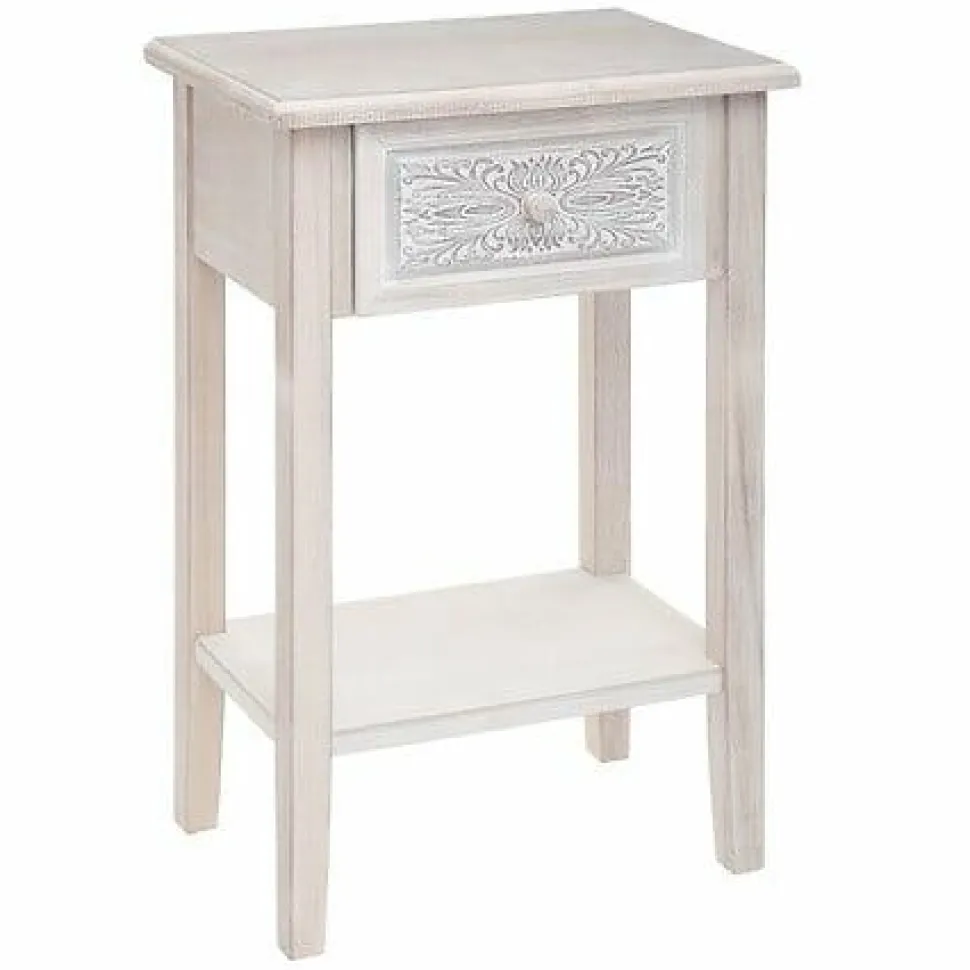 Uzupełnij swoją sypialnię o stolik nocny „Hina”. Ten mebel wzbogaci wystrój wnętrza i zapewni dodatkowe miejsce do przechowywania. Dzięki rzeźbionym ornamentom na froncie szuflady, mebel ten odsłania styl rzemieślniczy, który nawiązuje do tradycyjnych umiejętności. Te detale dodadzą wnętrzu pewnej miękkości i romantycznego charakteru.Do samodzielnego montażu:TakMateriał konstrukcji :Płyta pilśniowaMateriał nogi (nóg) :PaulowniaSzer. 45 x gł. 30 x wys. 67,5 cmWaga: 5 kg